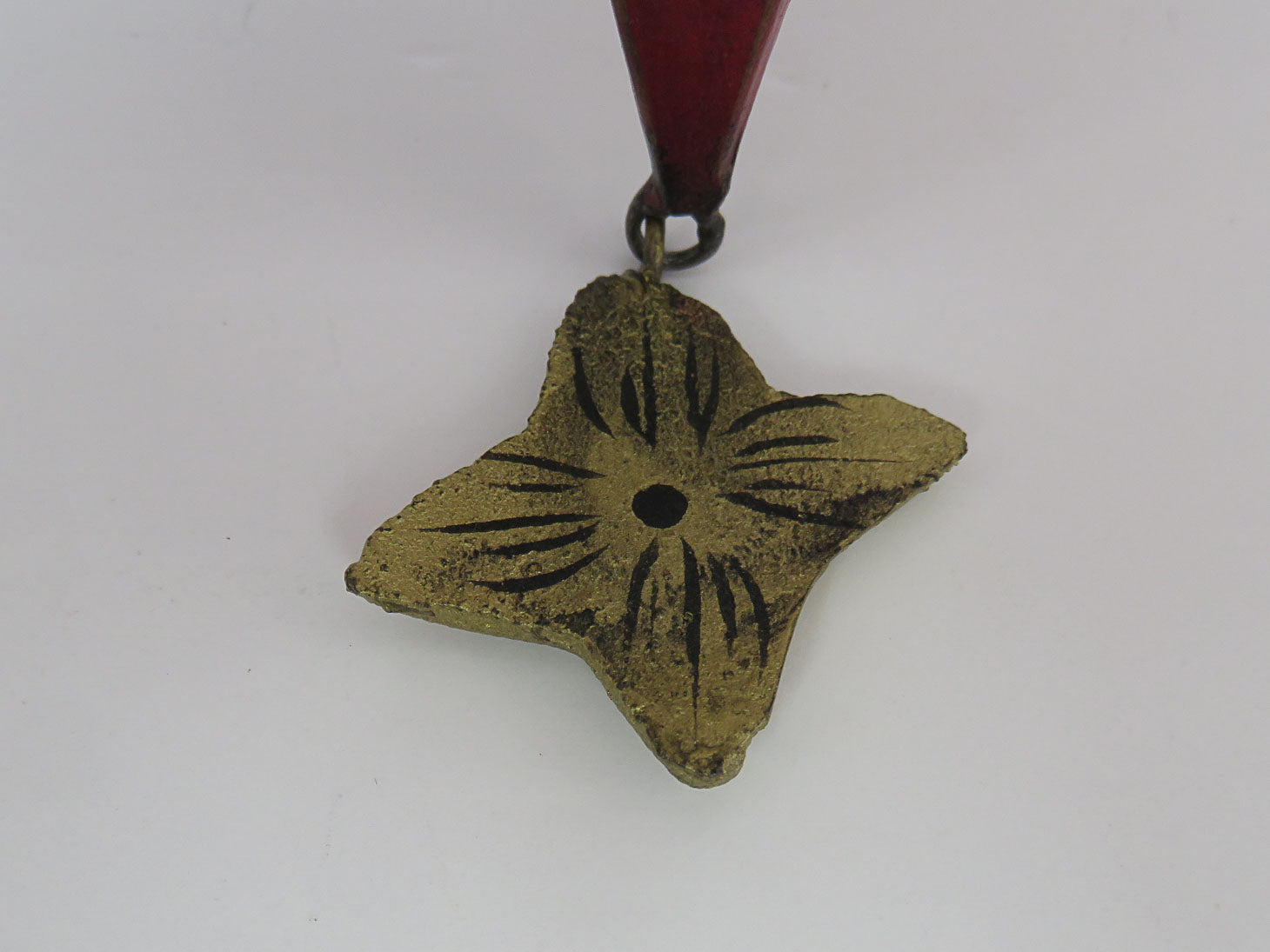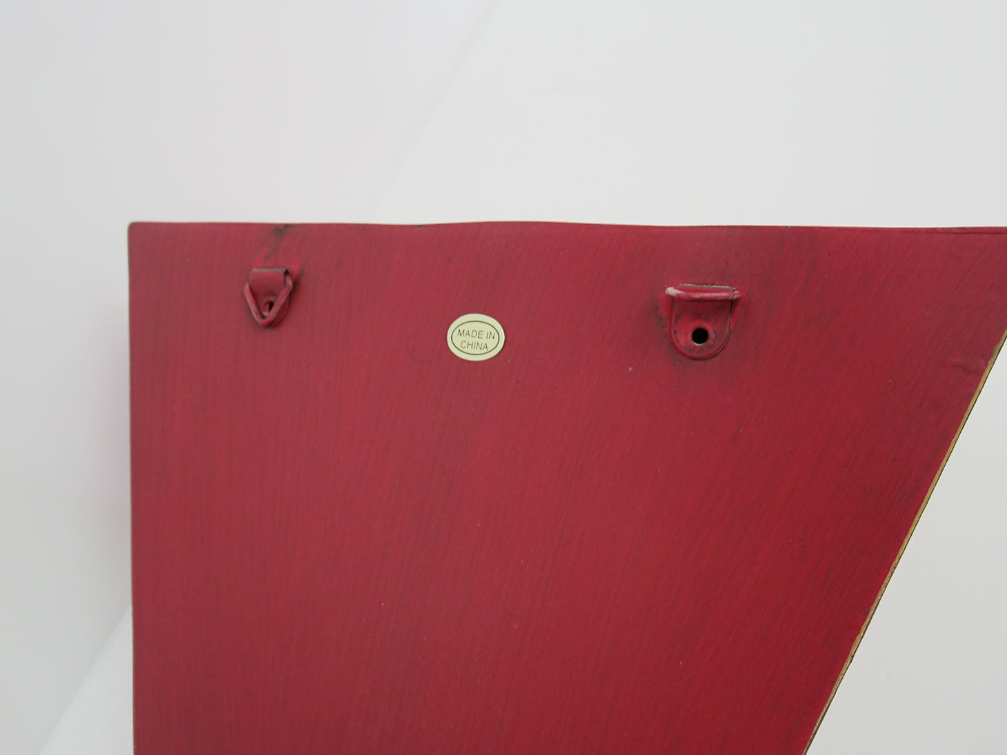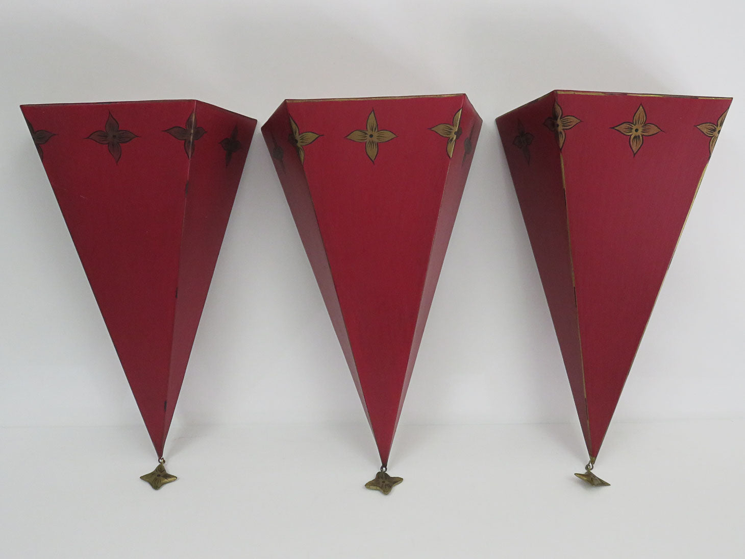 Set of 3, painted red metal with gold floral, hanging gold star on base