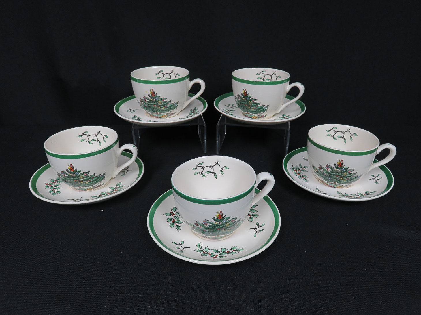 Set of 5, Christmas Tree pattern with green rim. 10pcs