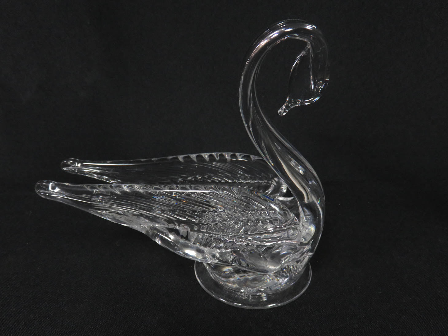 Pair of glass swans with tucked down necks, on round base by Edinburgh Crystal.