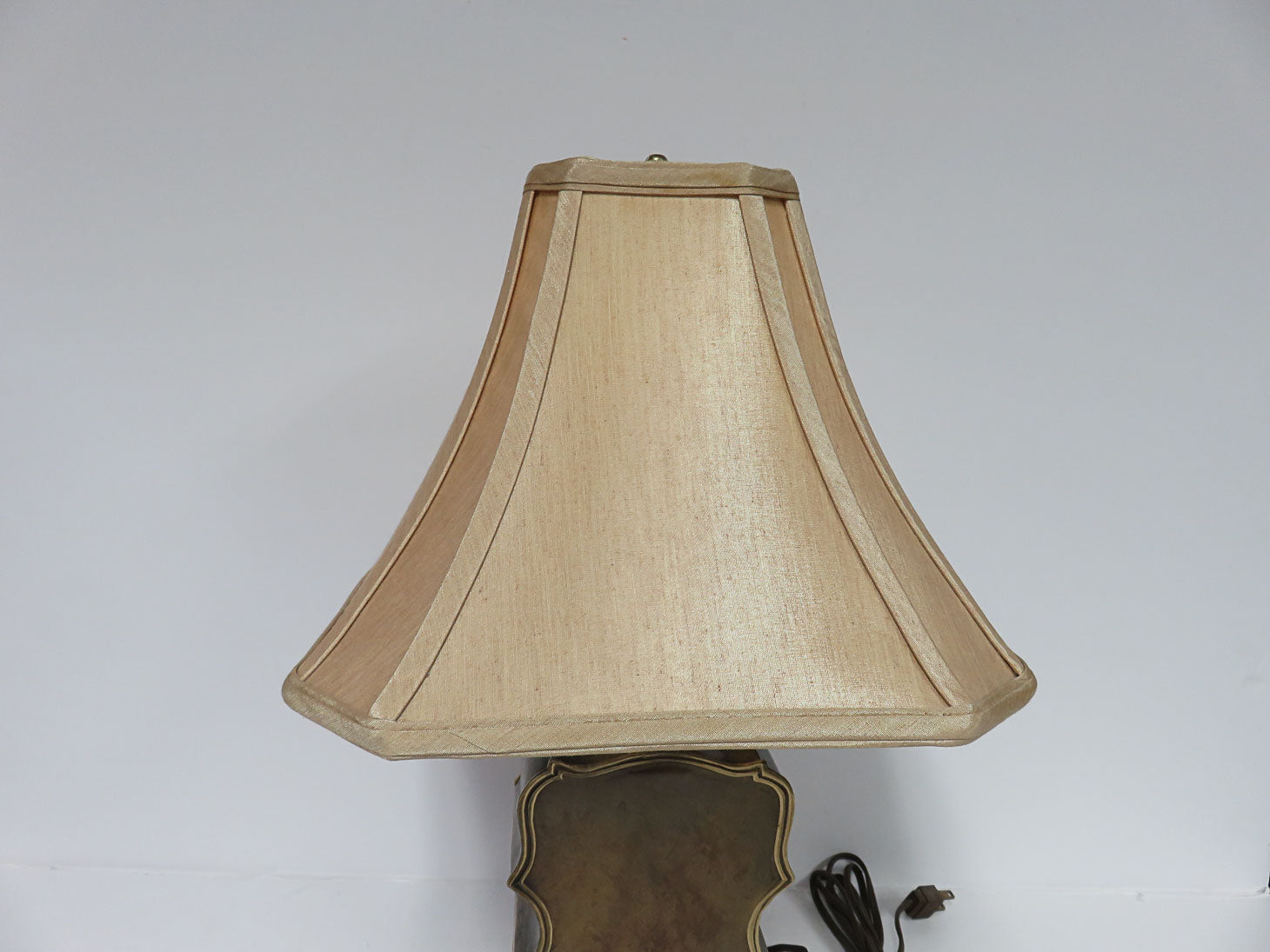 Brass base, flared silk shade. Shade is As Found.