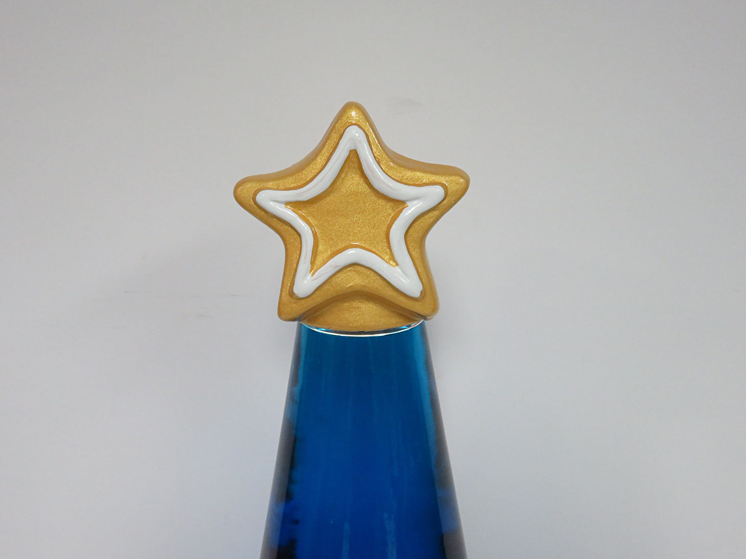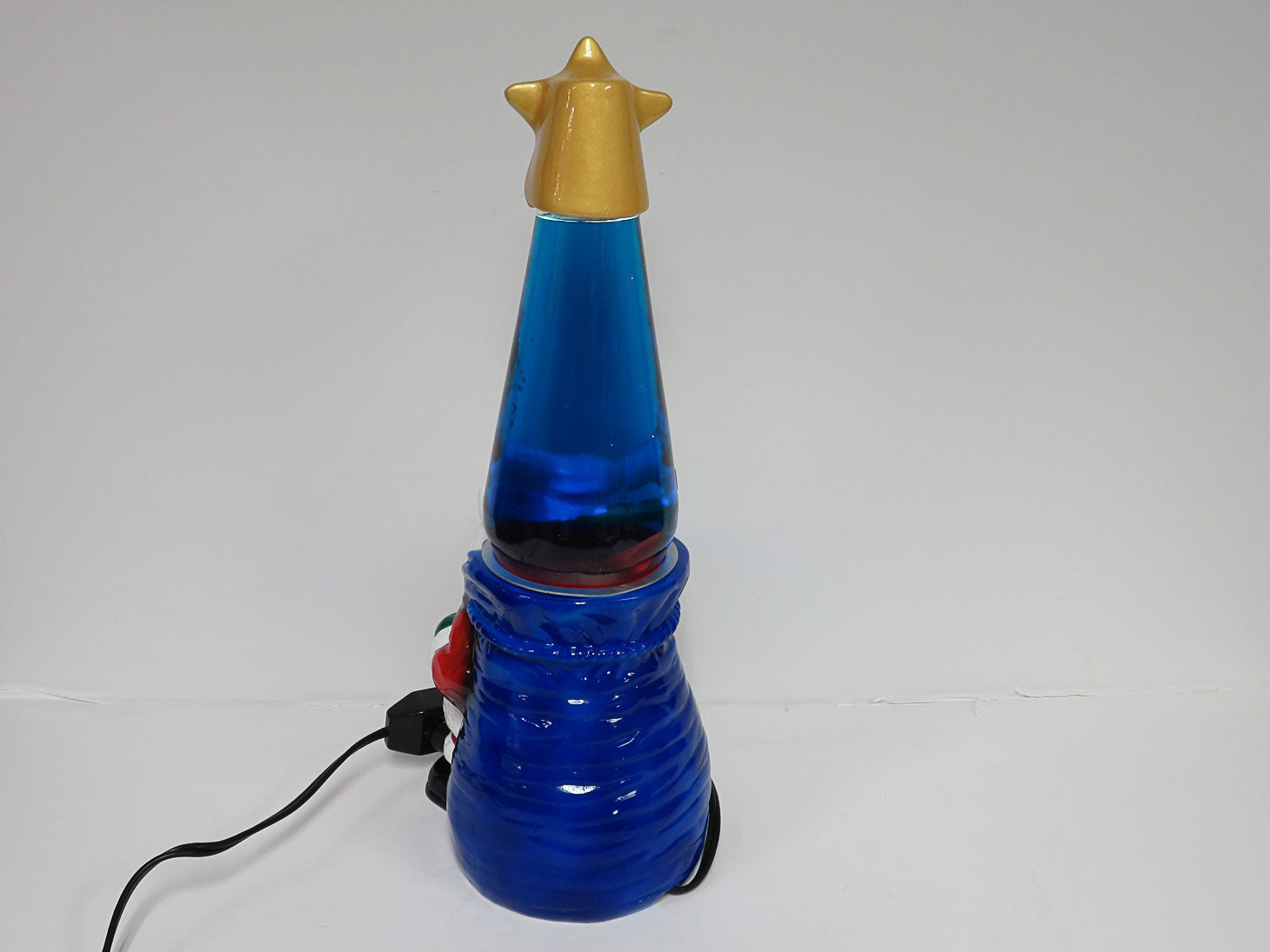 Original box, model 6527 by Haggerty Enterprises. Santa holding blue sack, tree with red lava, gold star, 3 pcs