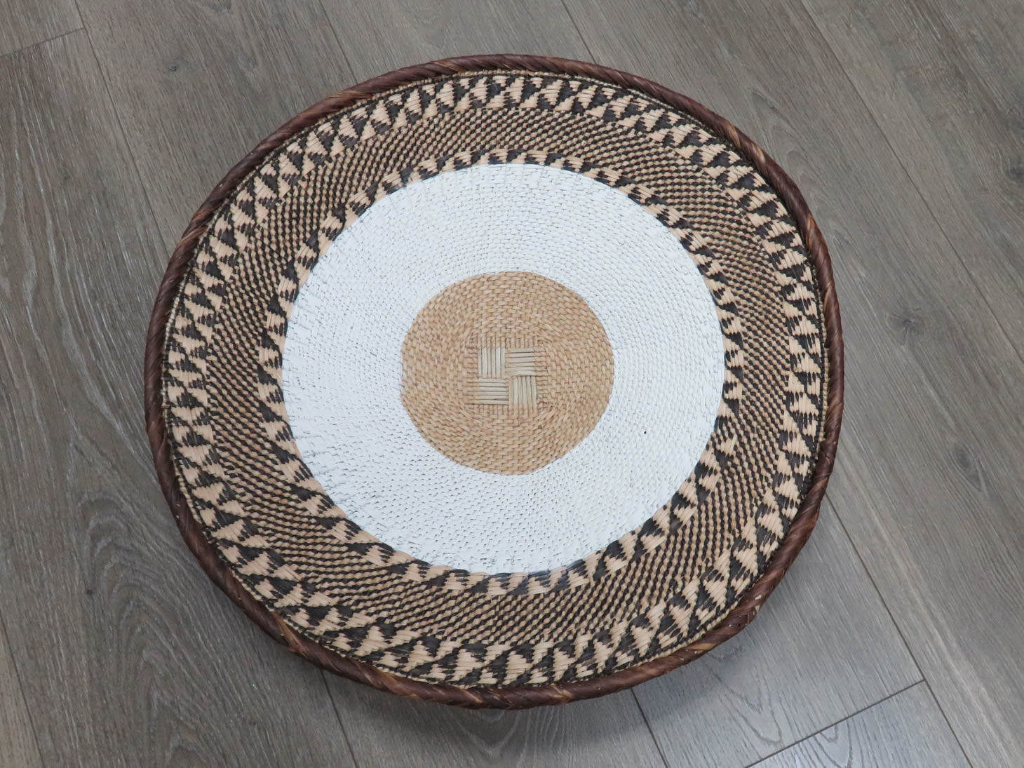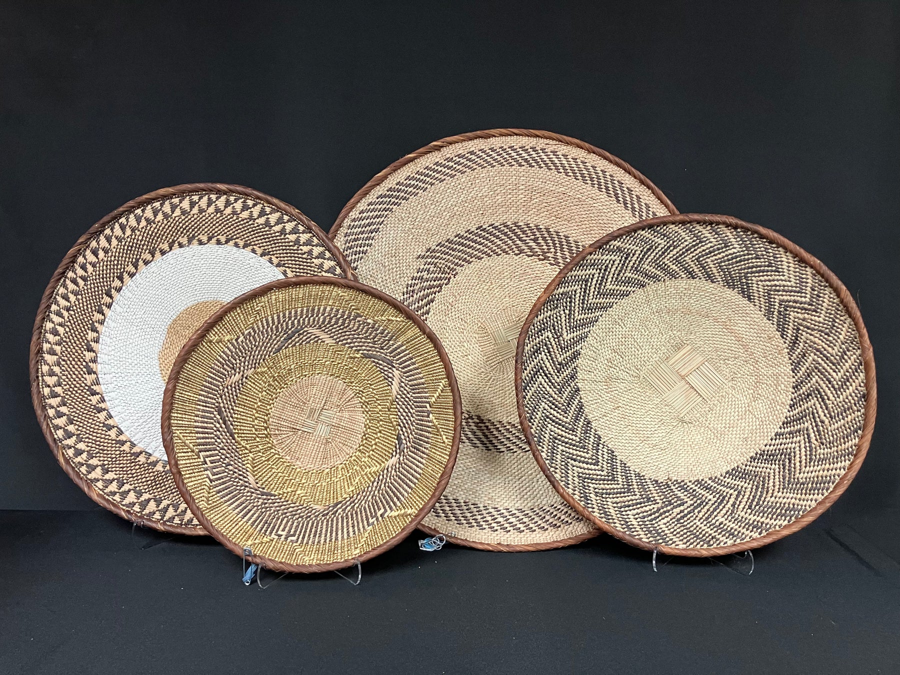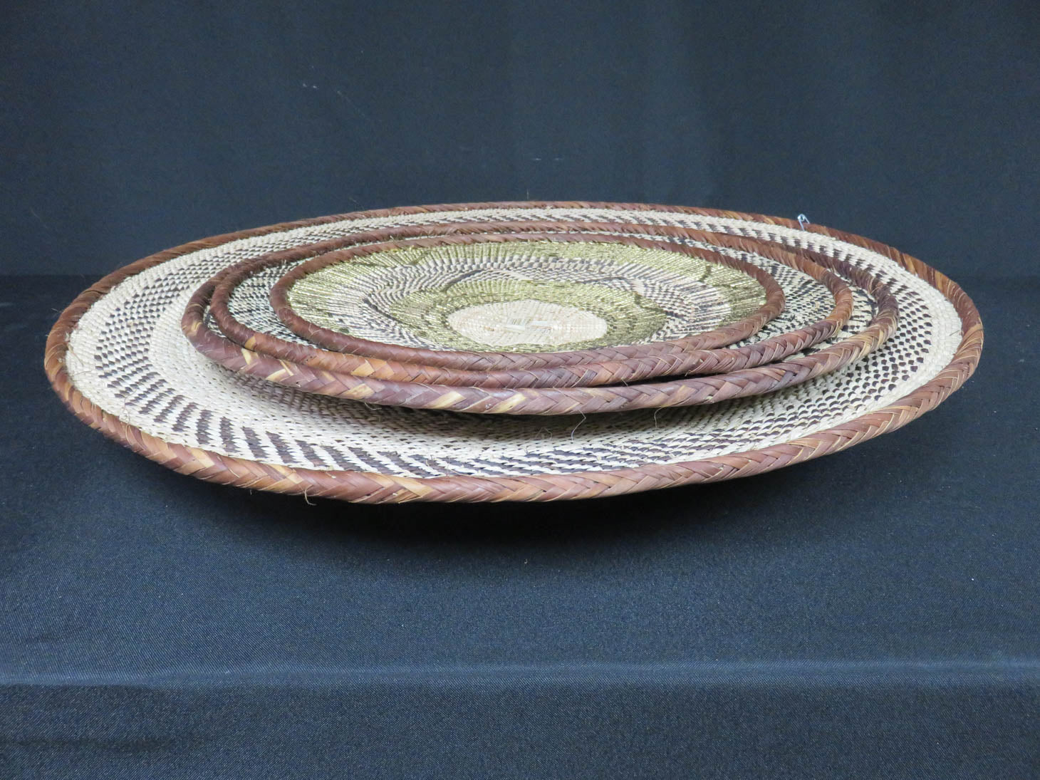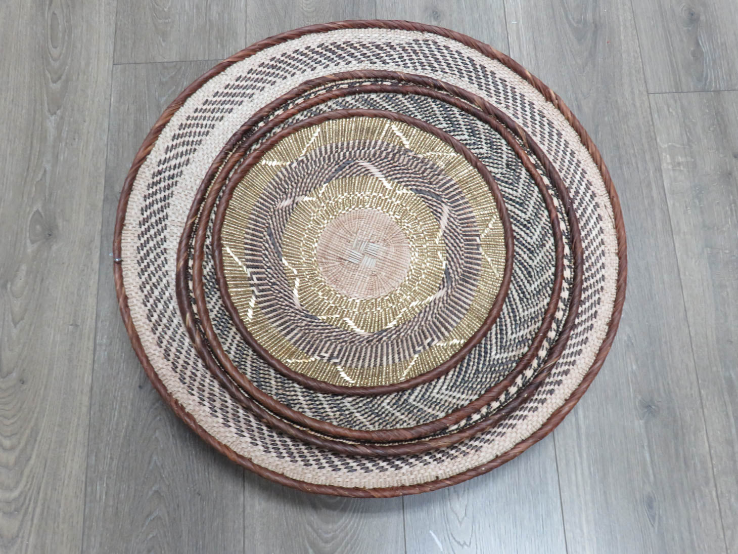 Set of 4, round, various sizes, natural woven in earth tones and white 23.5" largest