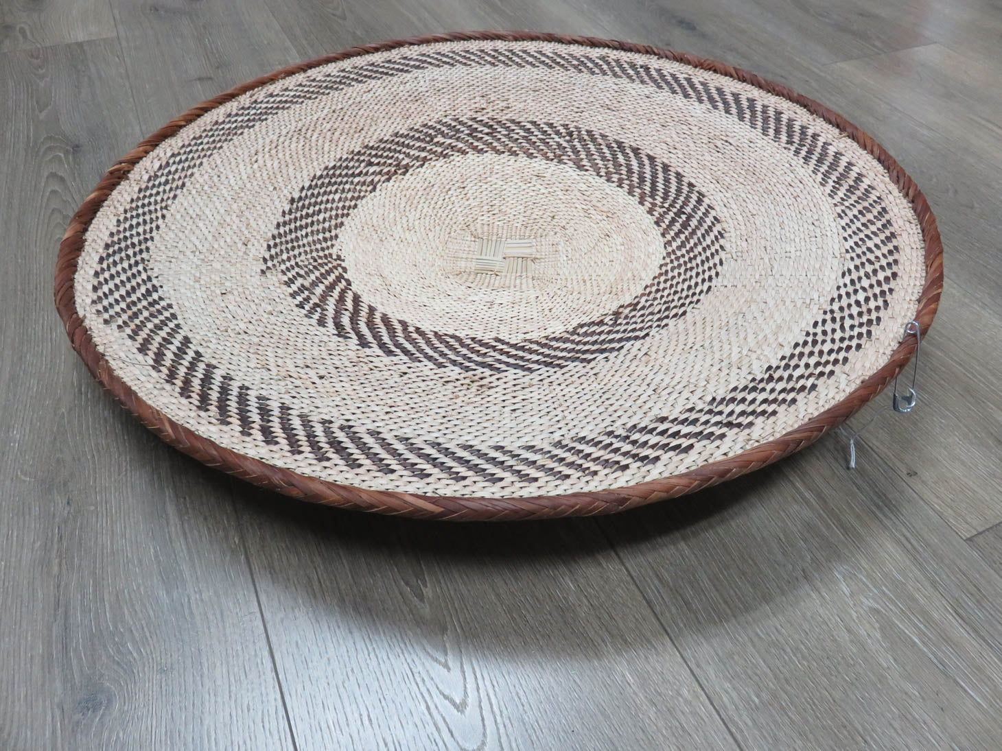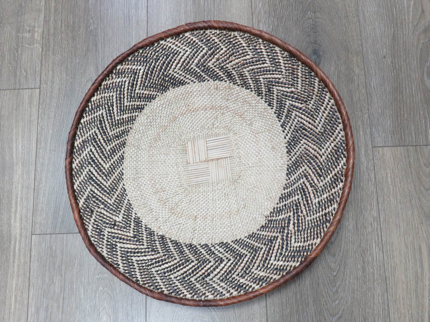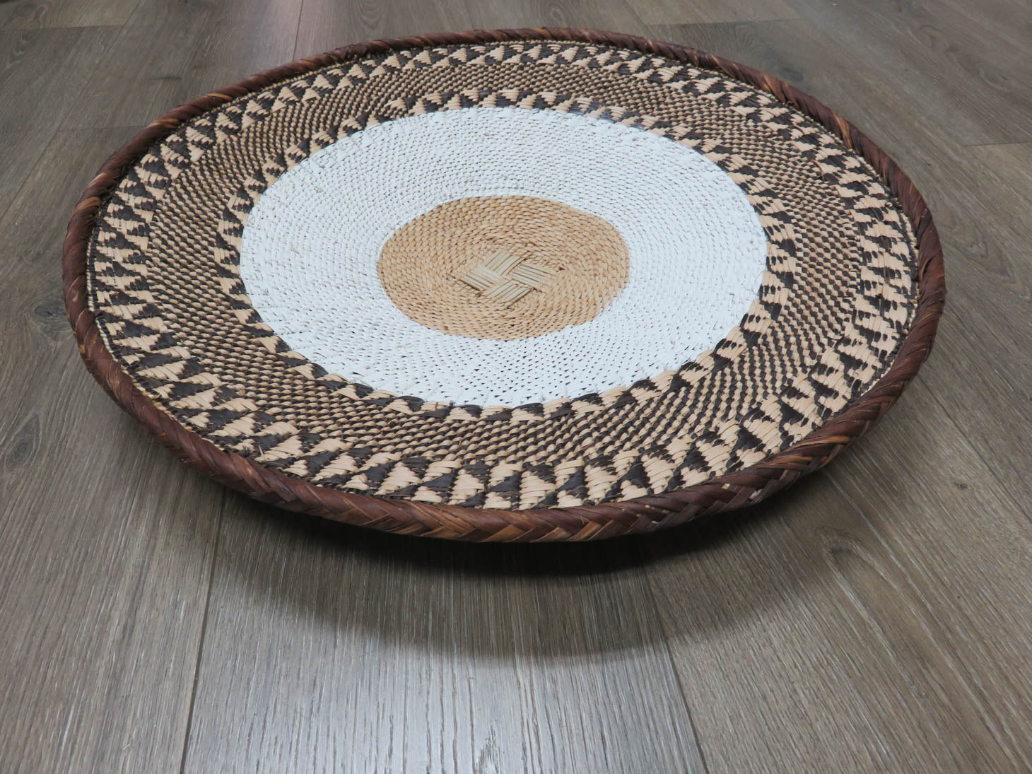 Set of 4, round, various sizes, natural woven in earth tones and white 23.5" largest