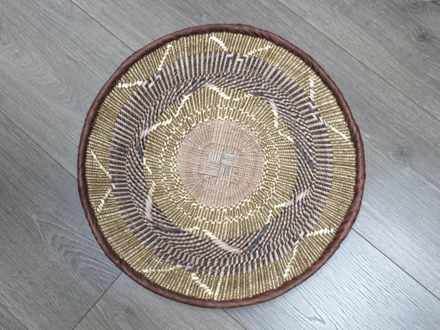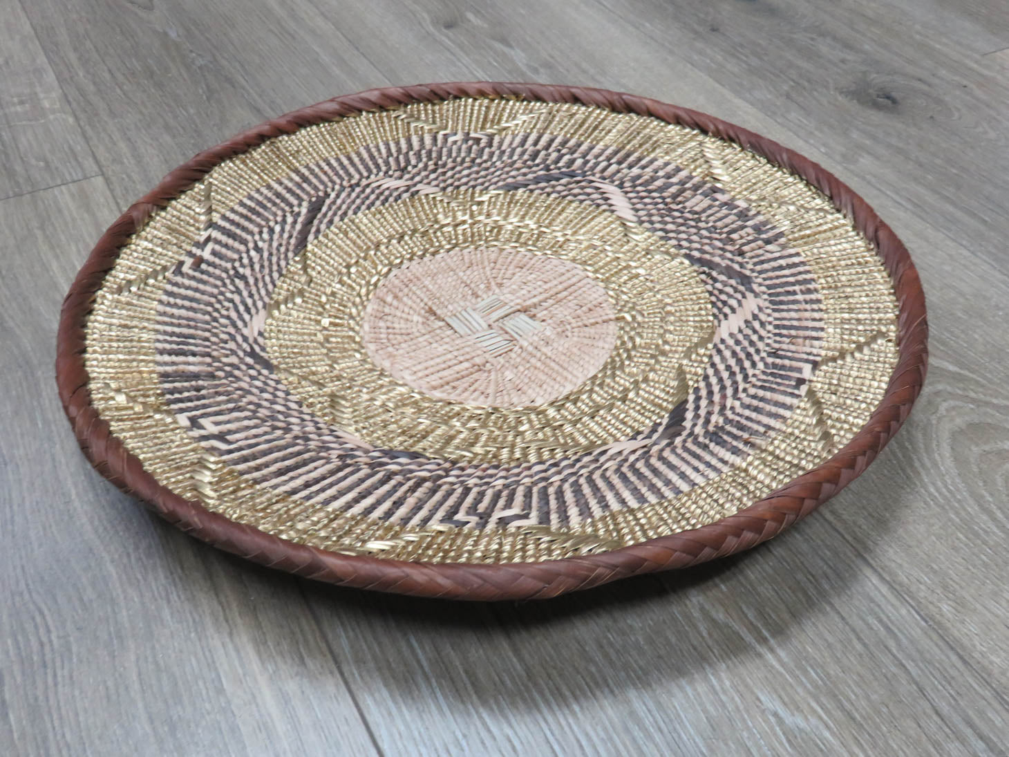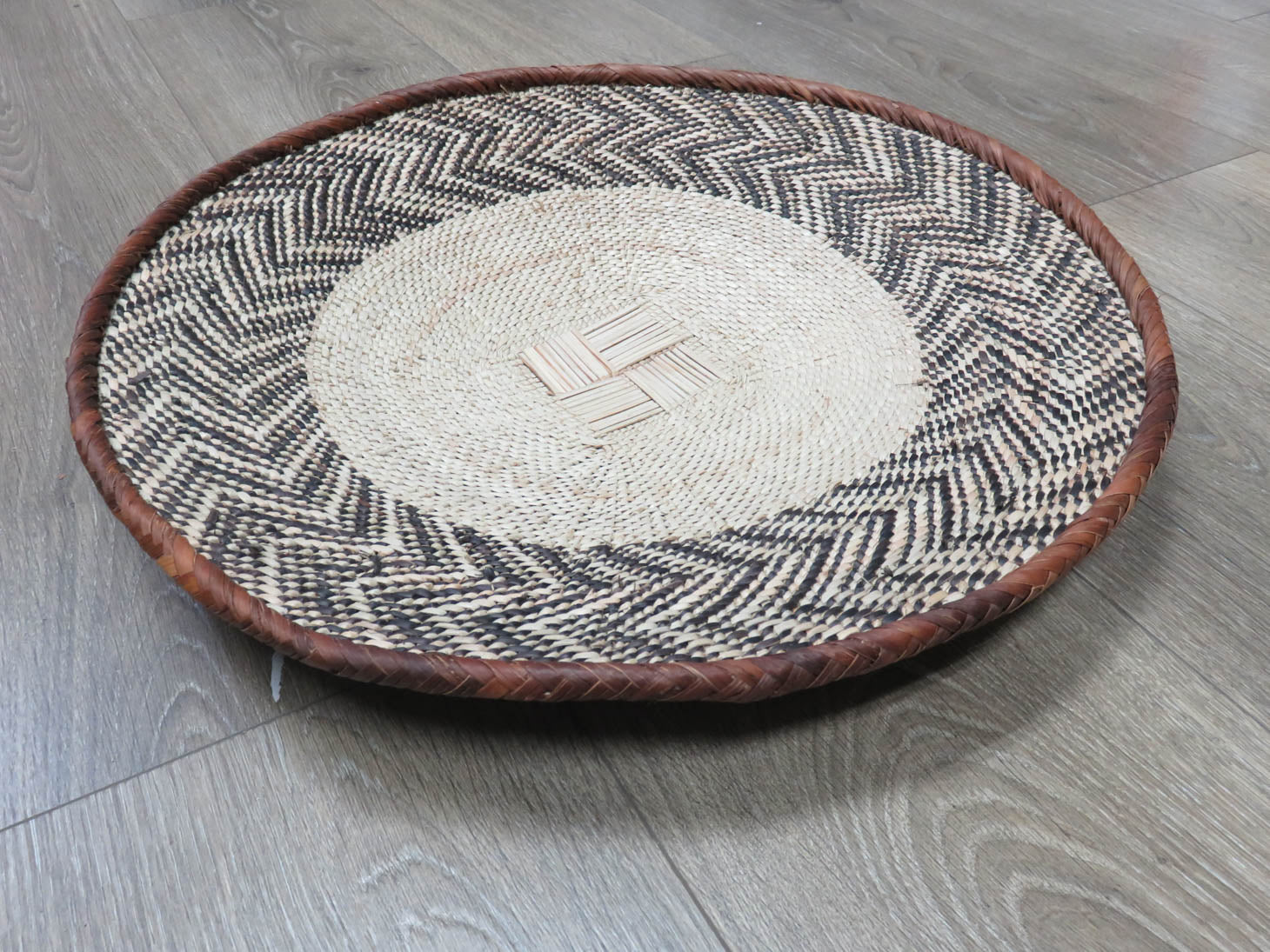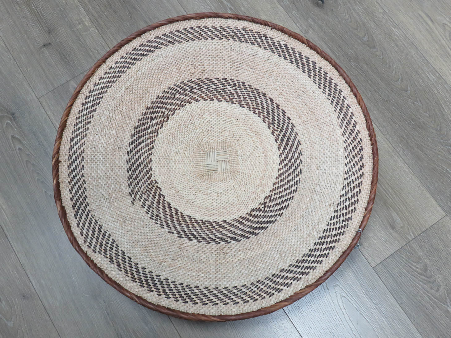 Set of 4, round, various sizes, natural woven in earth tones and white 23.5" largest