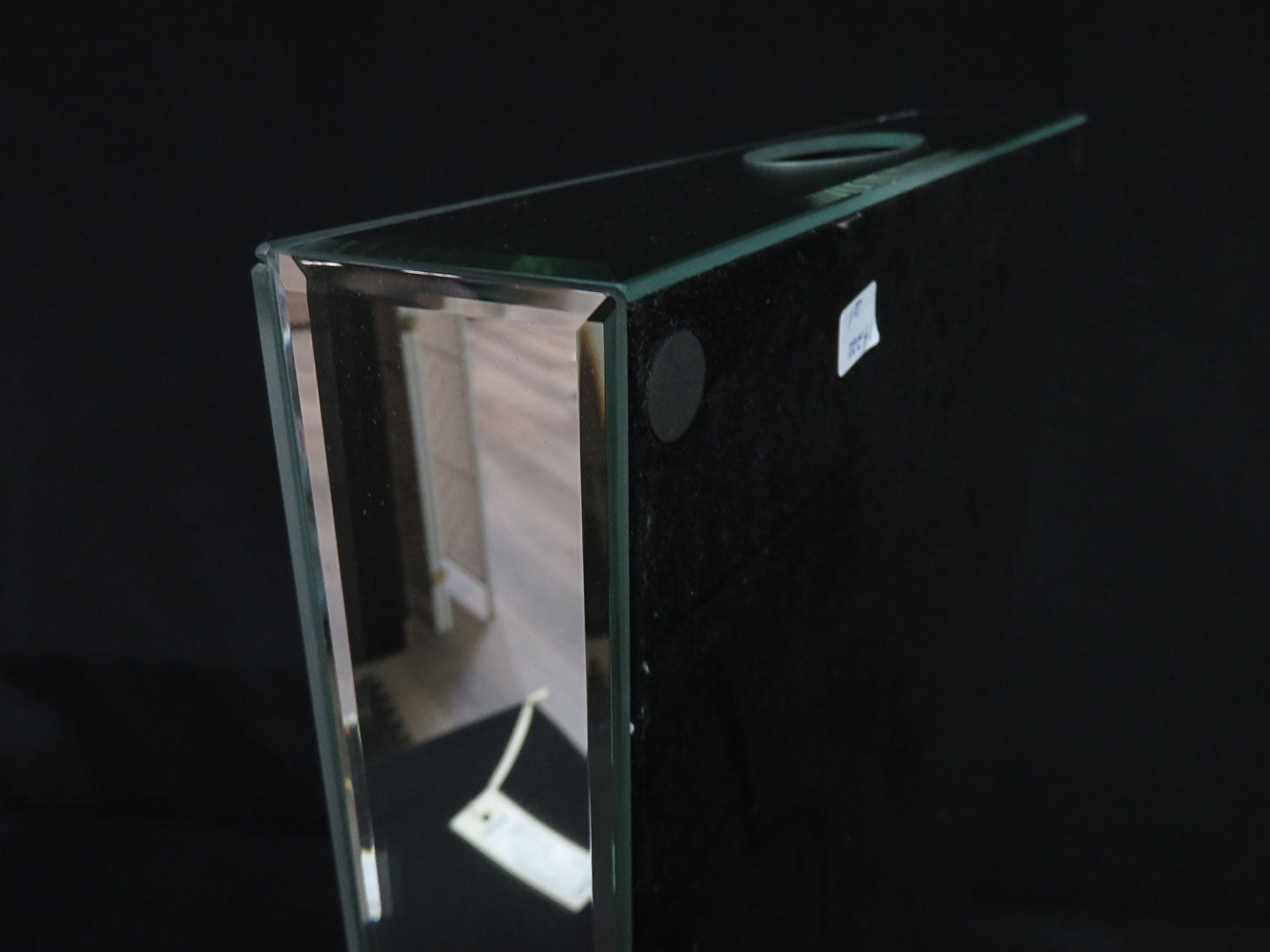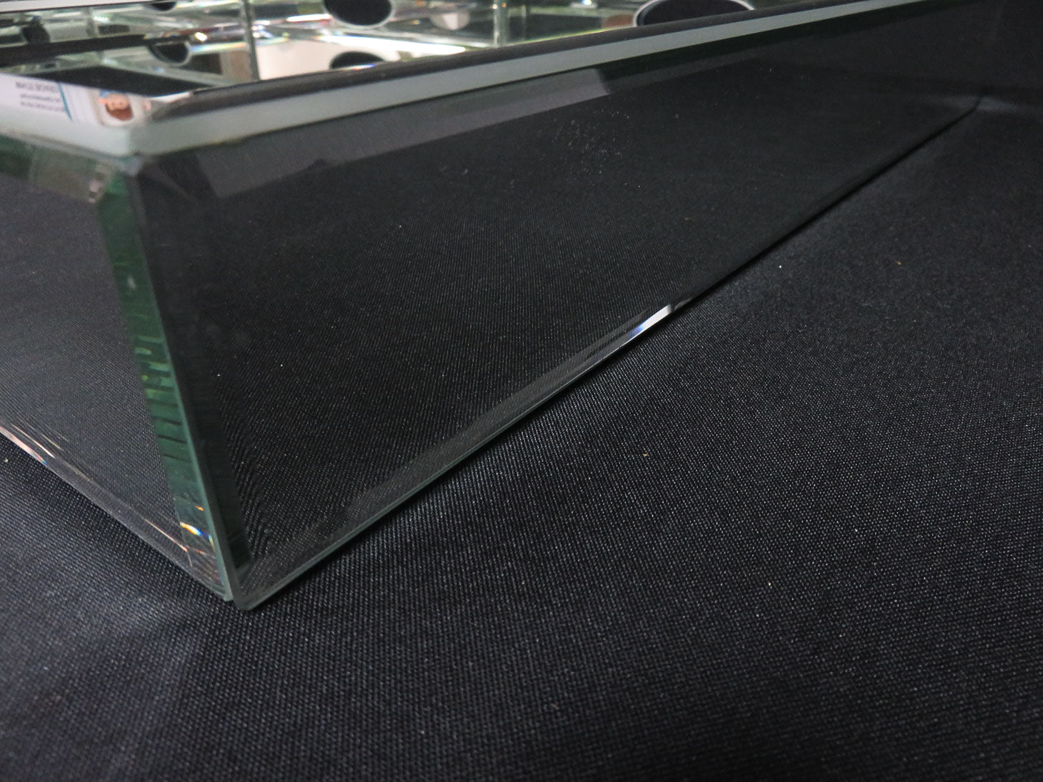 Item Number: 14220-61 Mirrored with some beveled panels. Tray has 2 oval cutout handles. 18.5"W x 13"D x 2.5" H