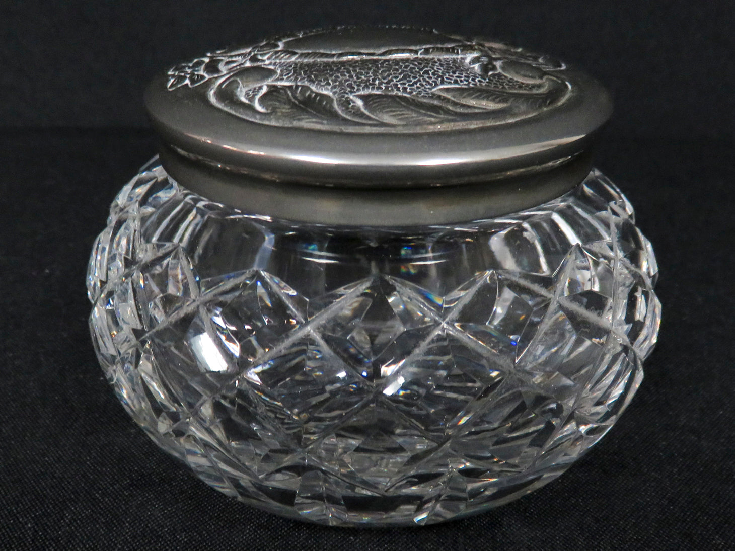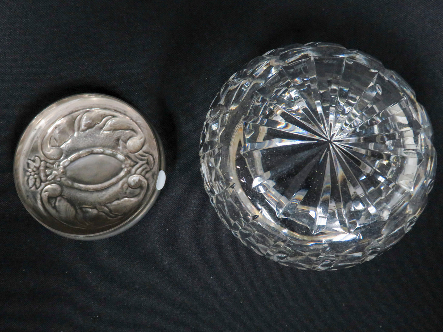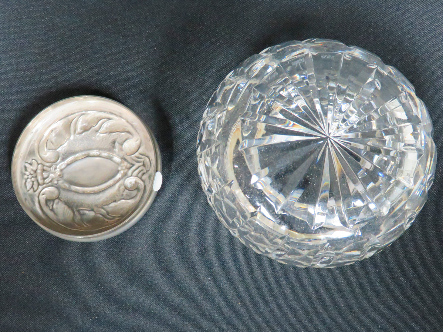 Vintage crystal jar, embossed silver plated lid, Waterford marked on lid, 2pcs