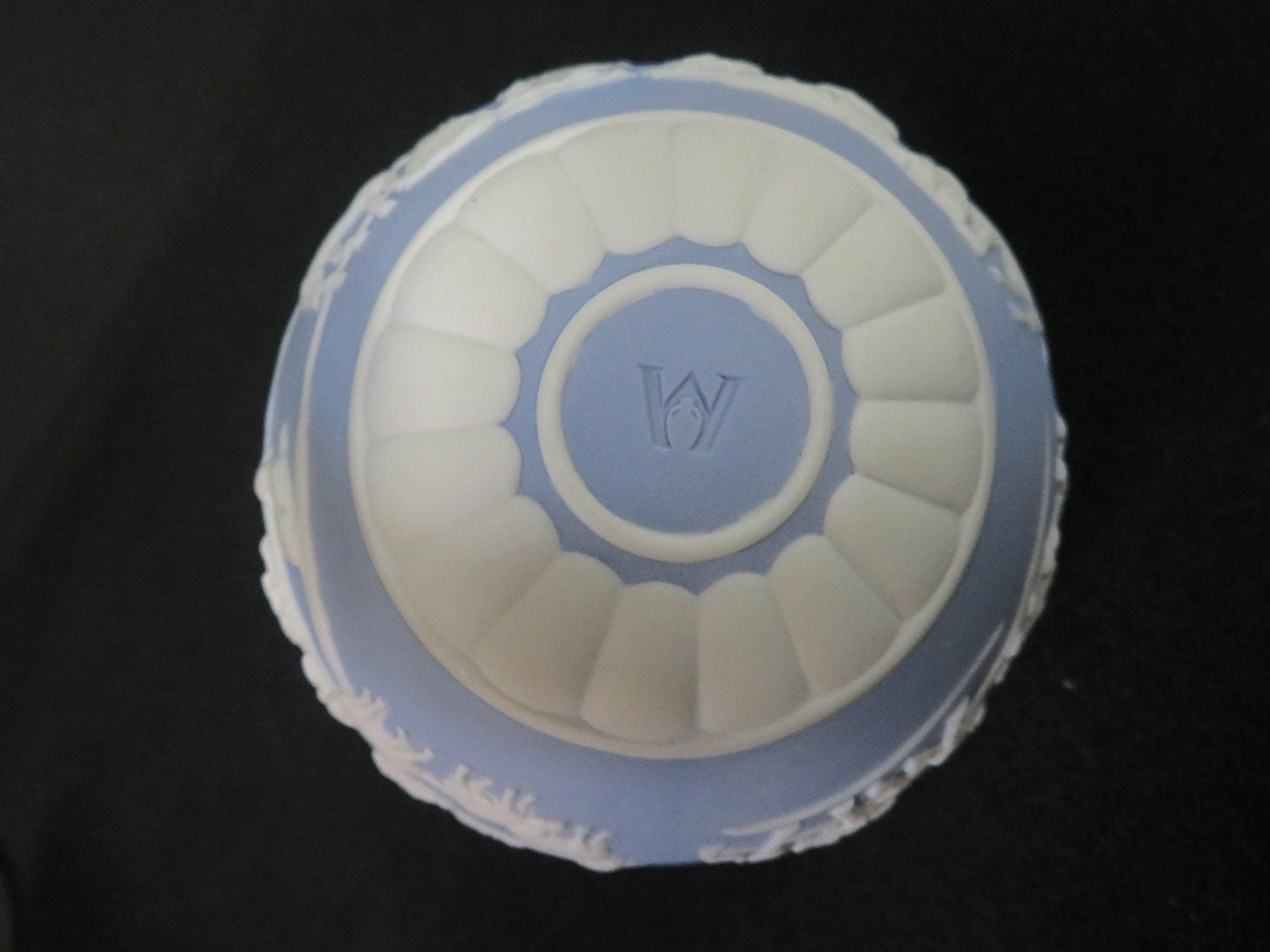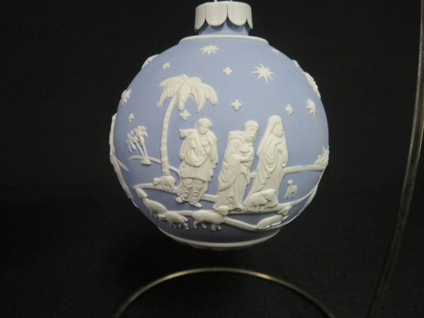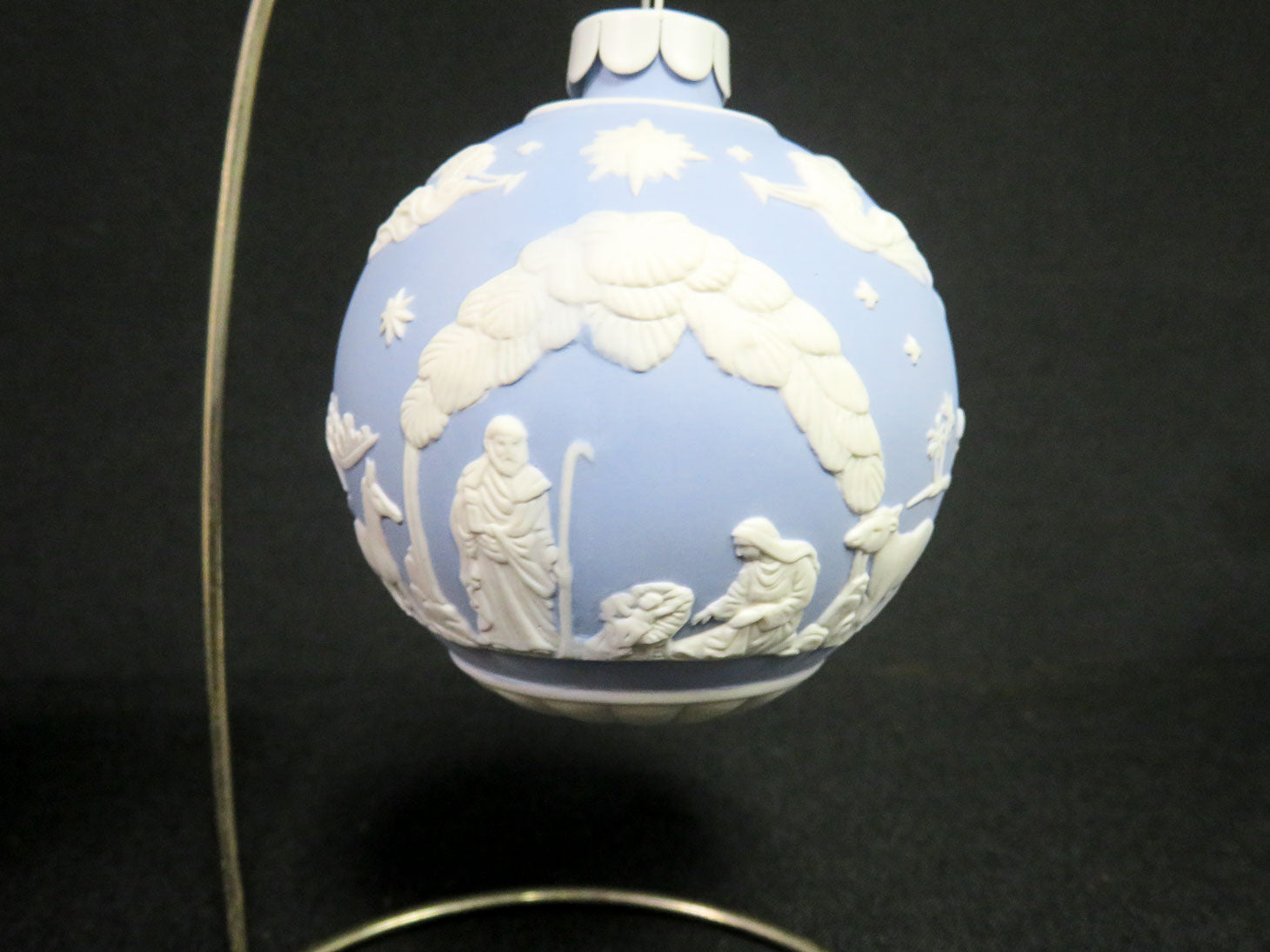 Item Number: 4992-50 Blue and white Jasperware ornament, of the nativity scene, 2010 in original box. 3"D