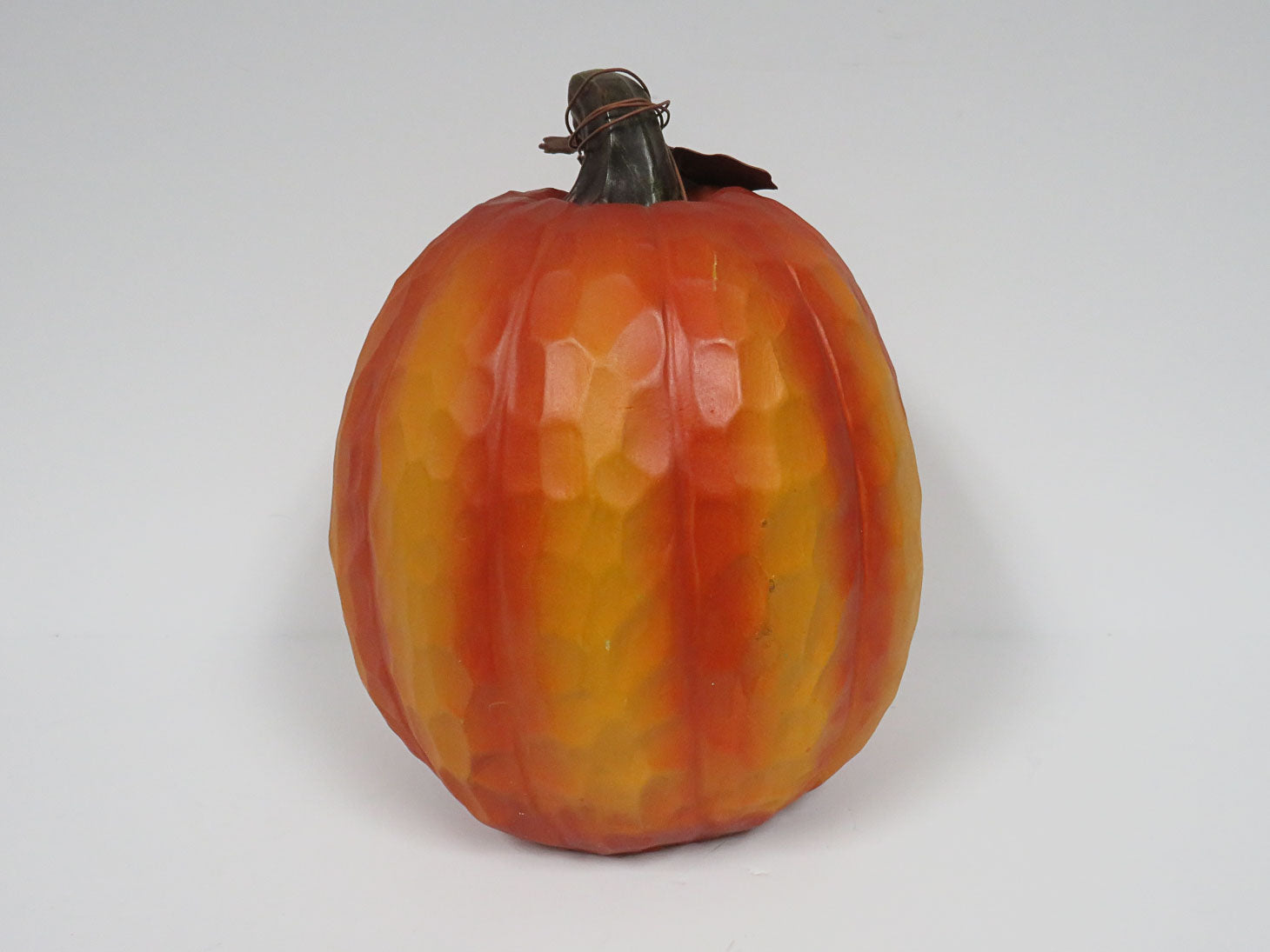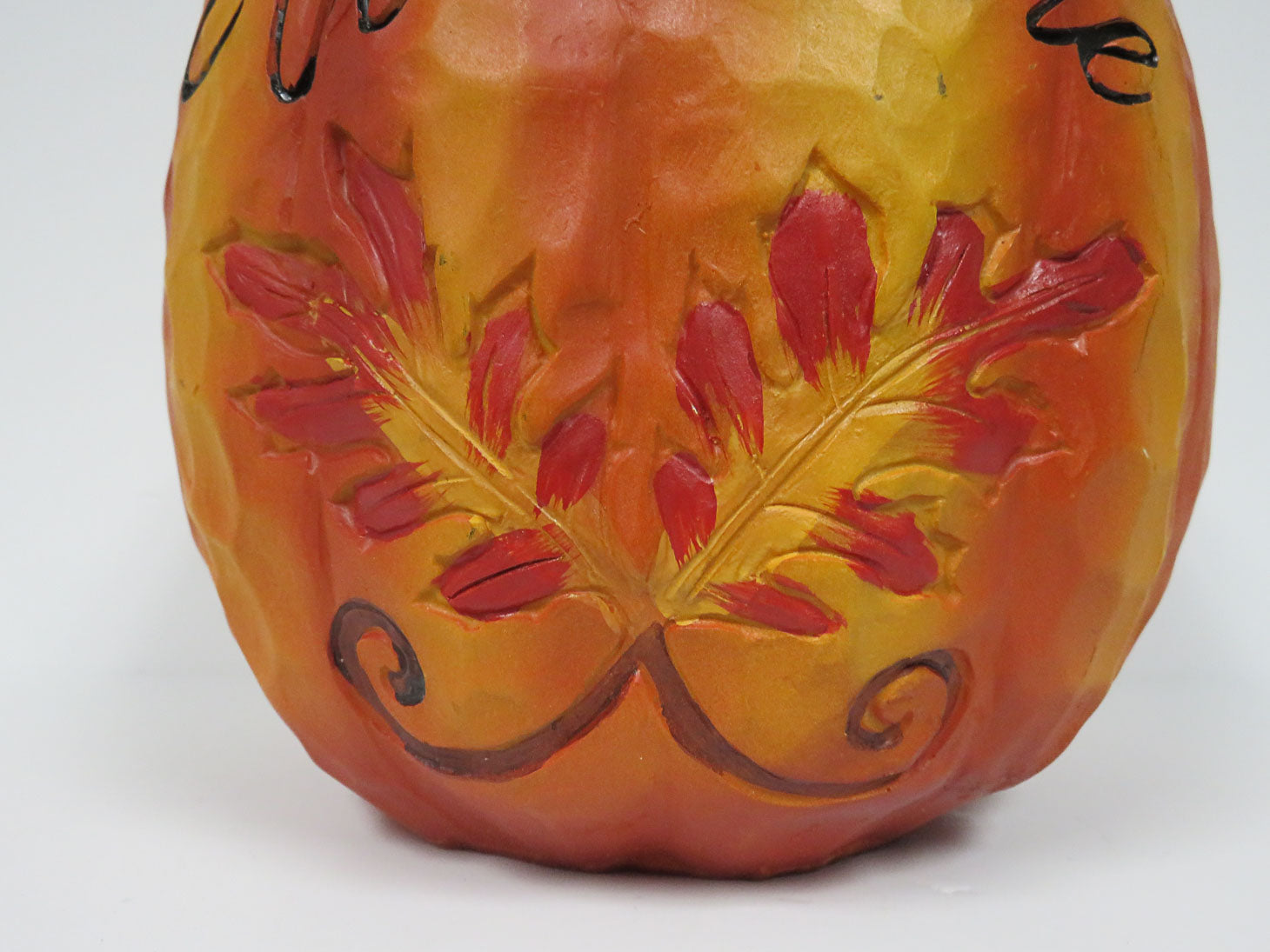 Composite pumpkin with metal maple leaves. Wishing guests "Welcome".