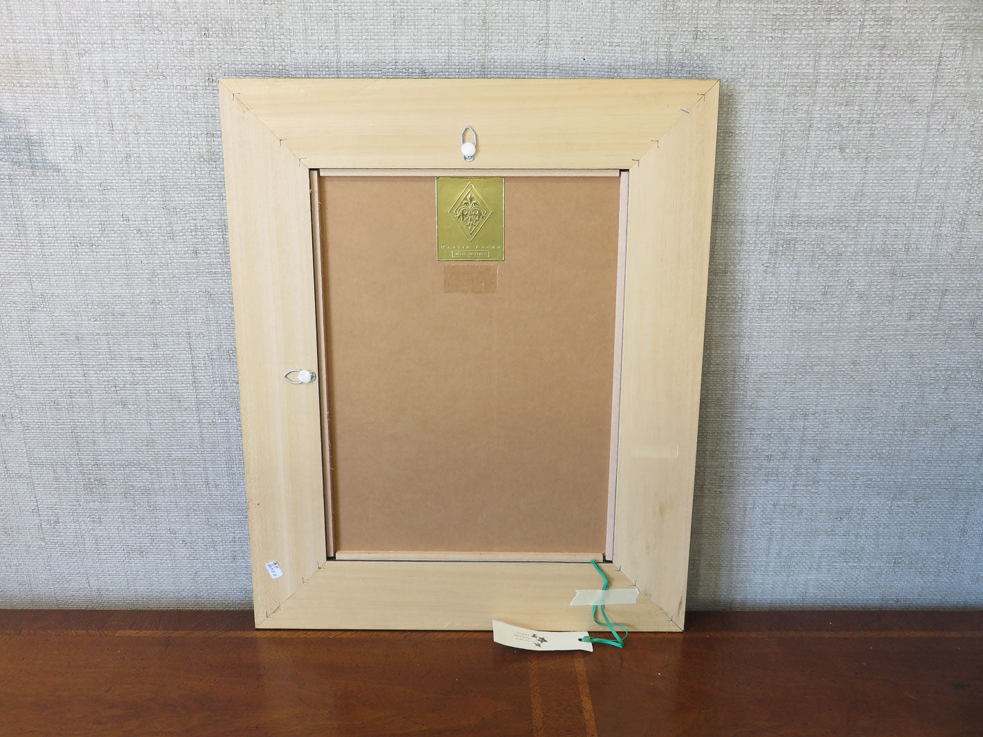 Painted scroll design in umber and gold. Can be mounted vertically or horizontally.