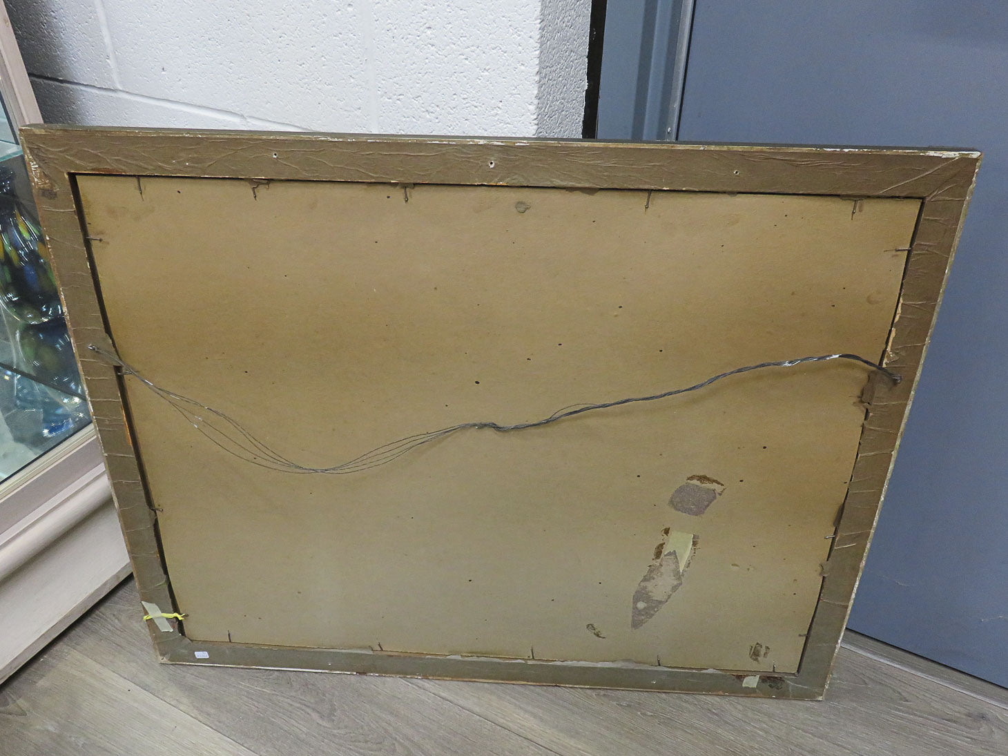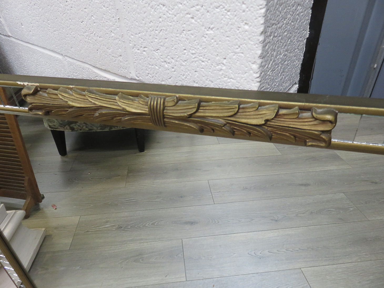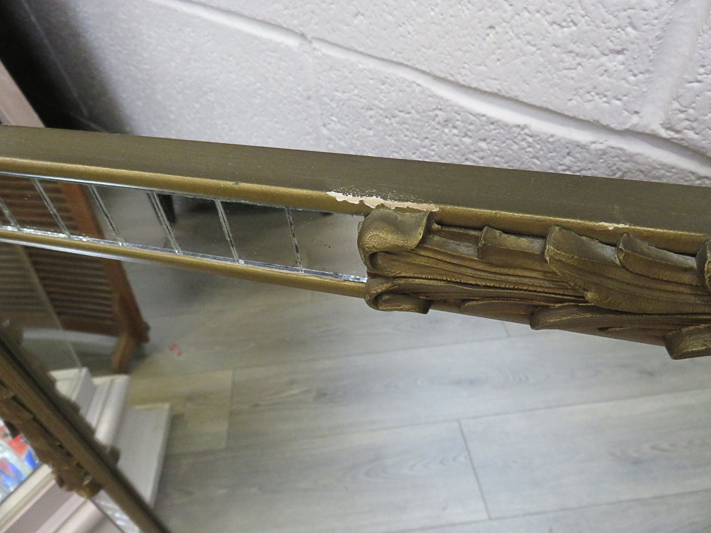 Hollywood Regency style mirror with gilded leaves and mirrored squares on frame