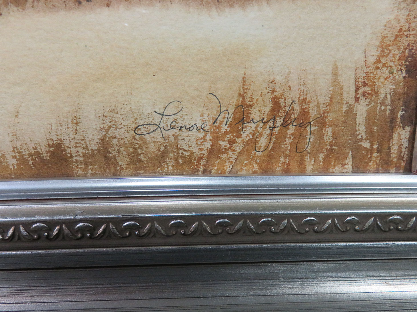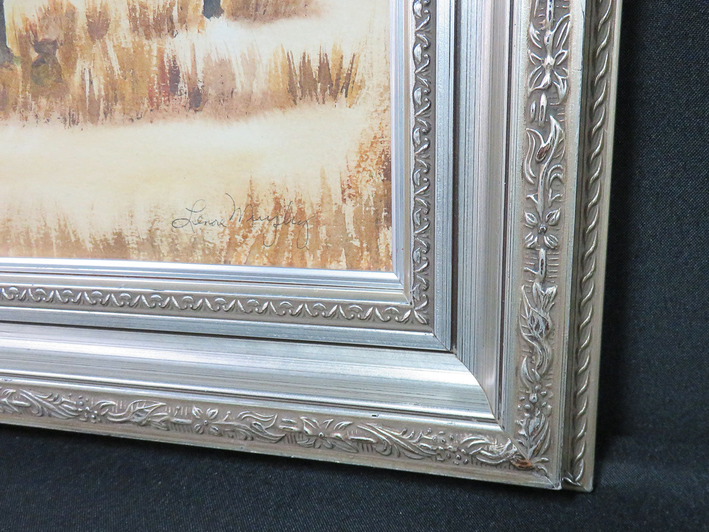 Nambian landscape scene by Chicago artist Lenore Murphy; pewter colored frame
