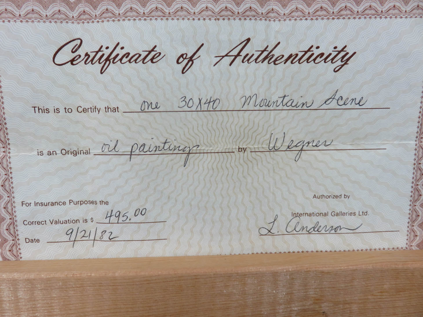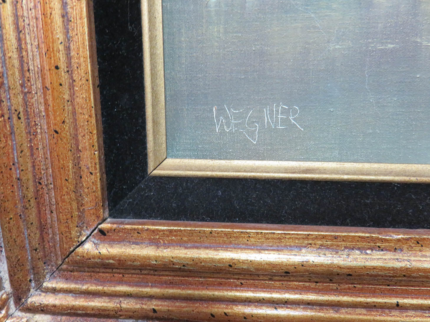 Signed Wegner, ornate gold frame with black velvet liner