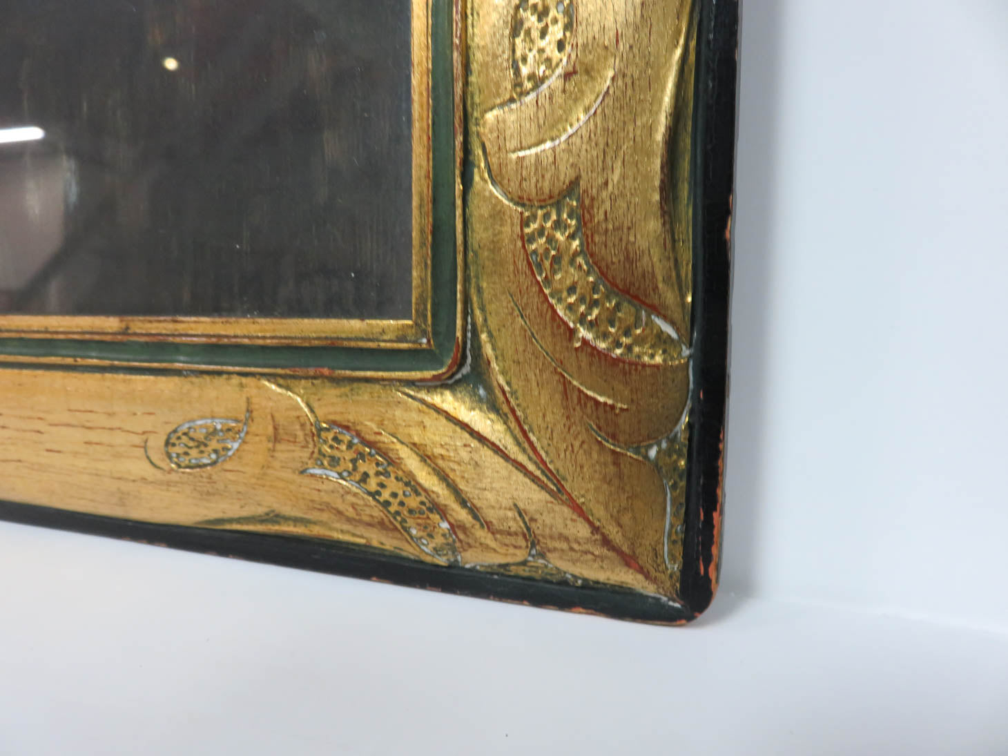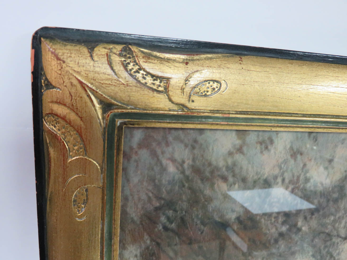 Cows by a river, trees, gold frame with carved corners, chips on frame, by Arnold Marc Gorter