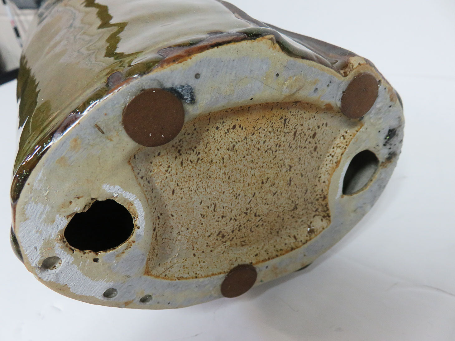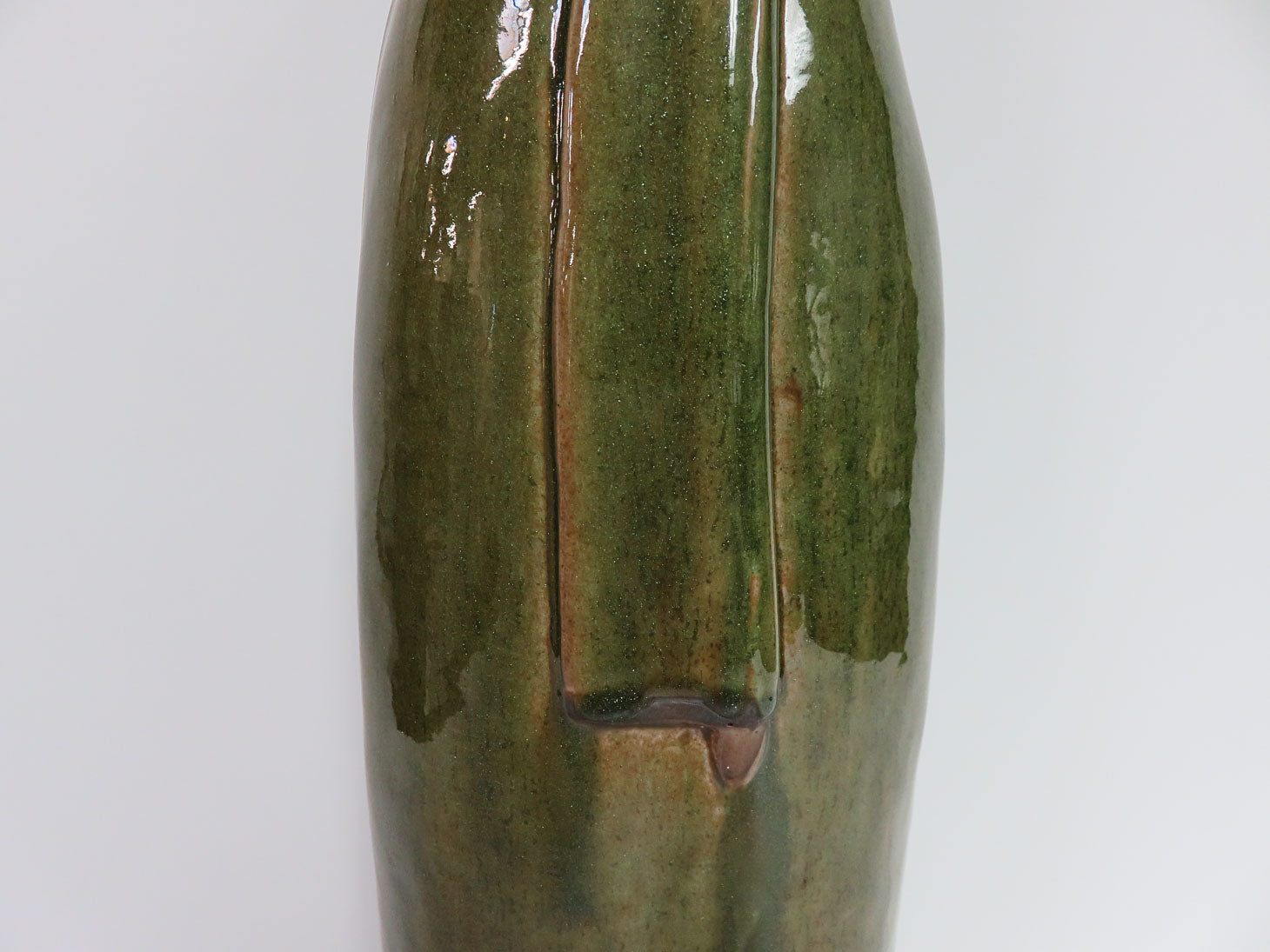 Vintage Asian woman, green glaze with pewter colored accents