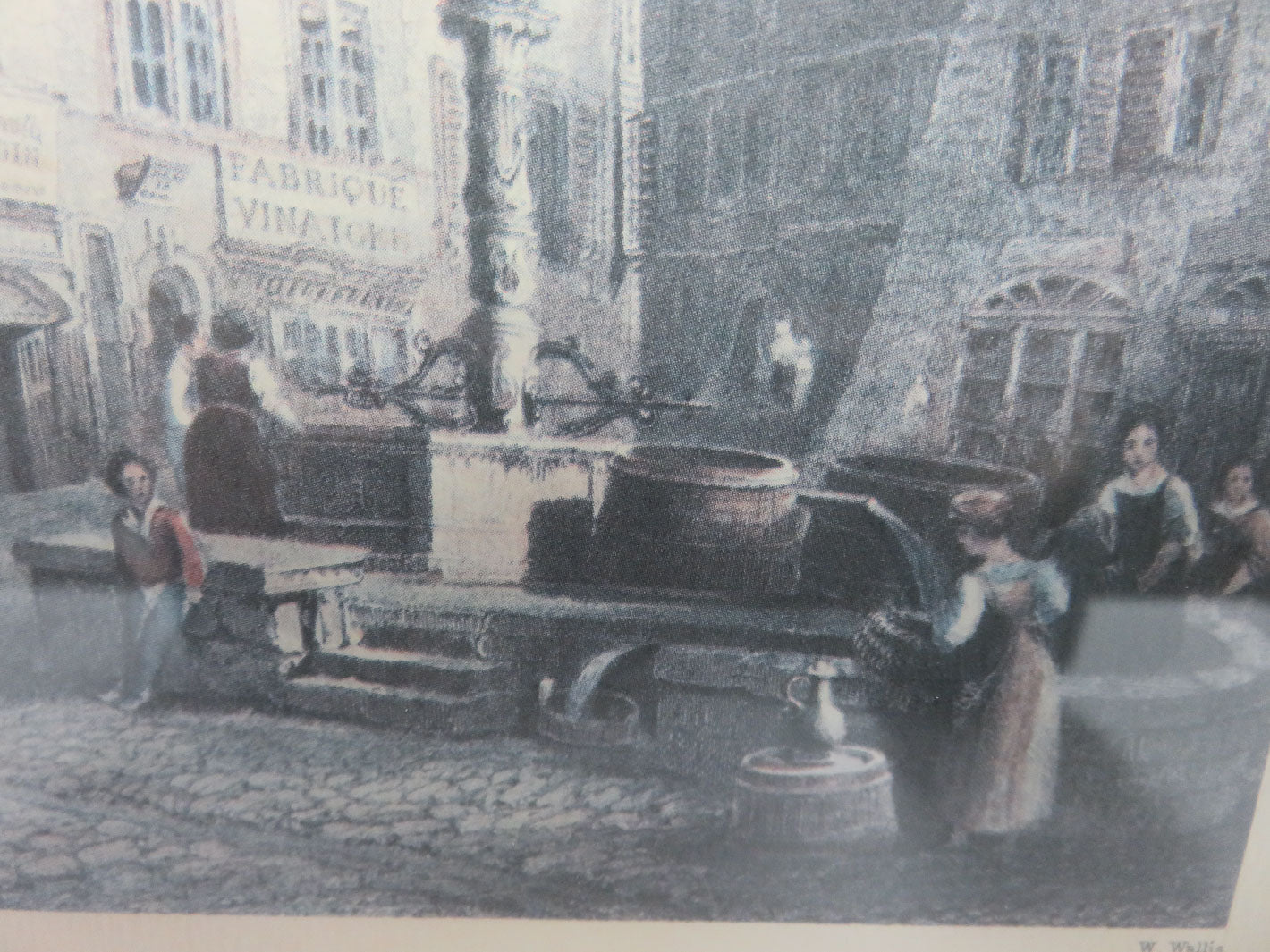 "Place de Palud, Lausanne" vintage city center with cream linen mat, red and gold frame 11.25" x 13.75"