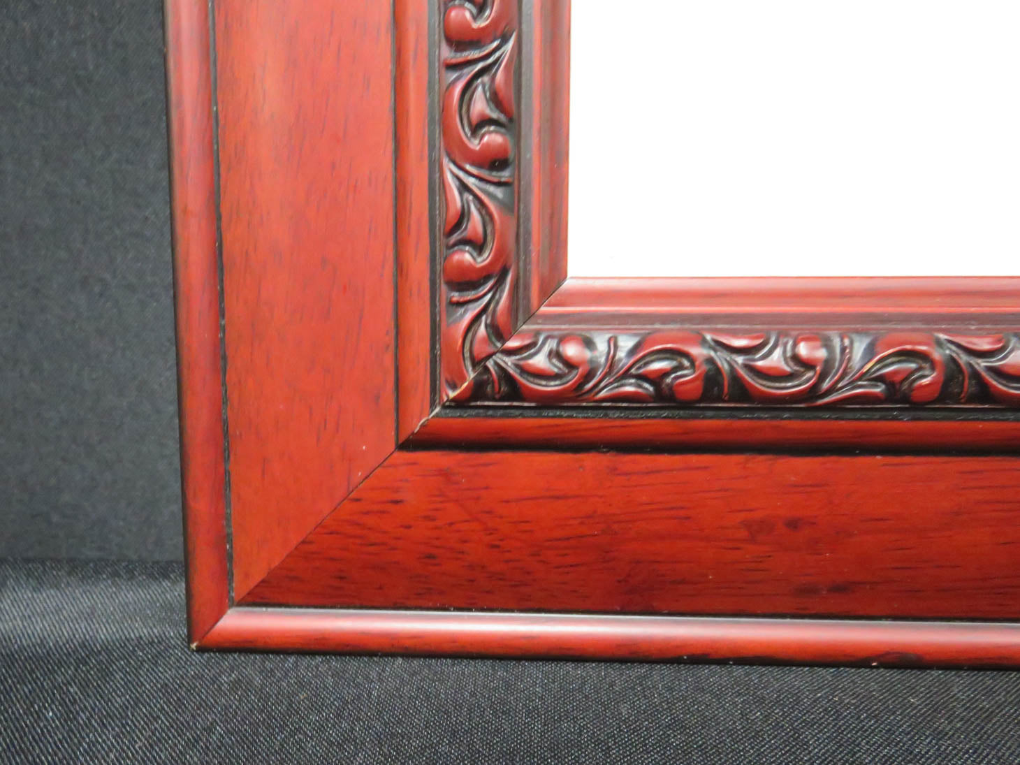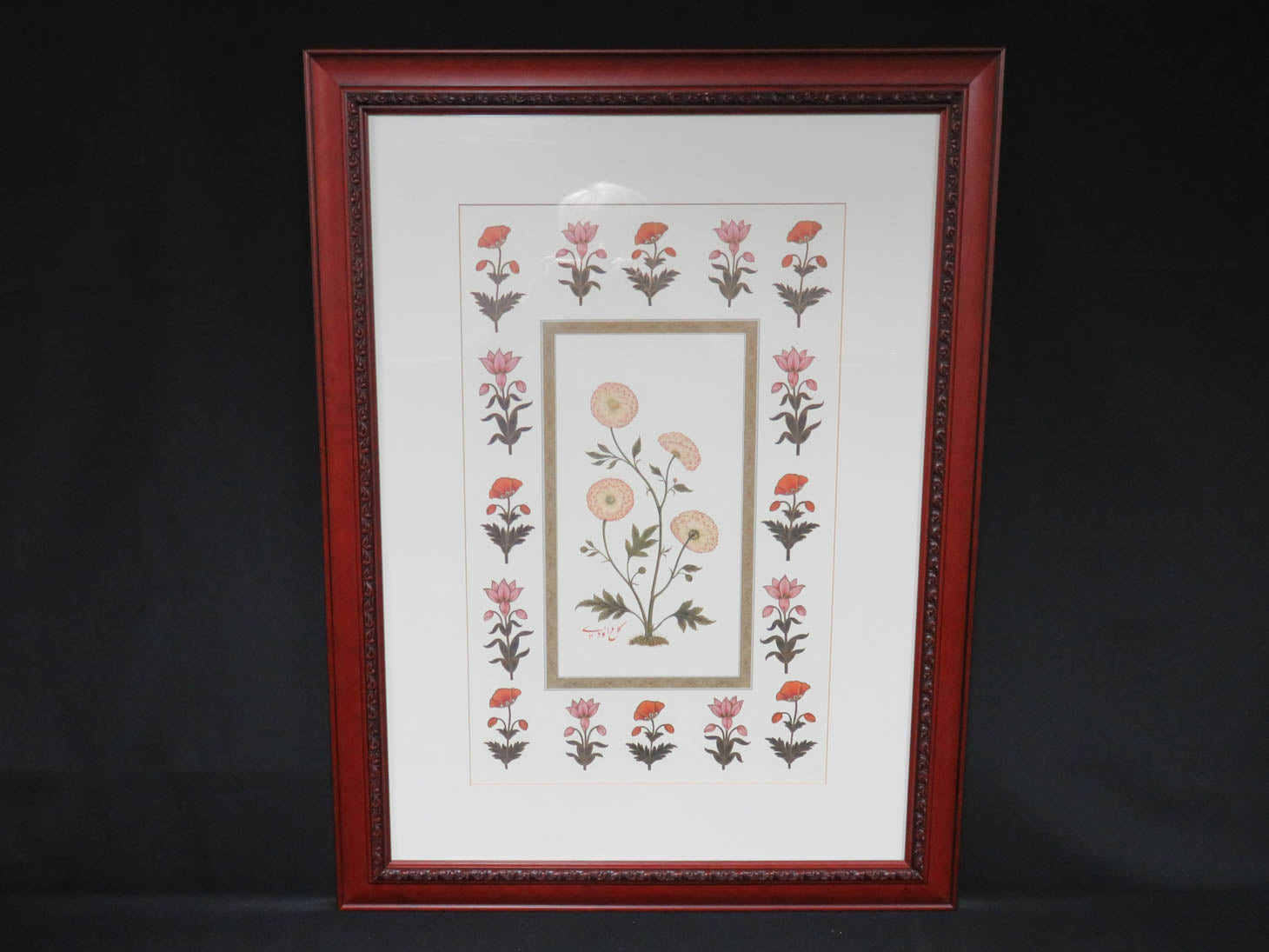 Botanical with gold center flower and border of orange and pink flowers, cherry frame