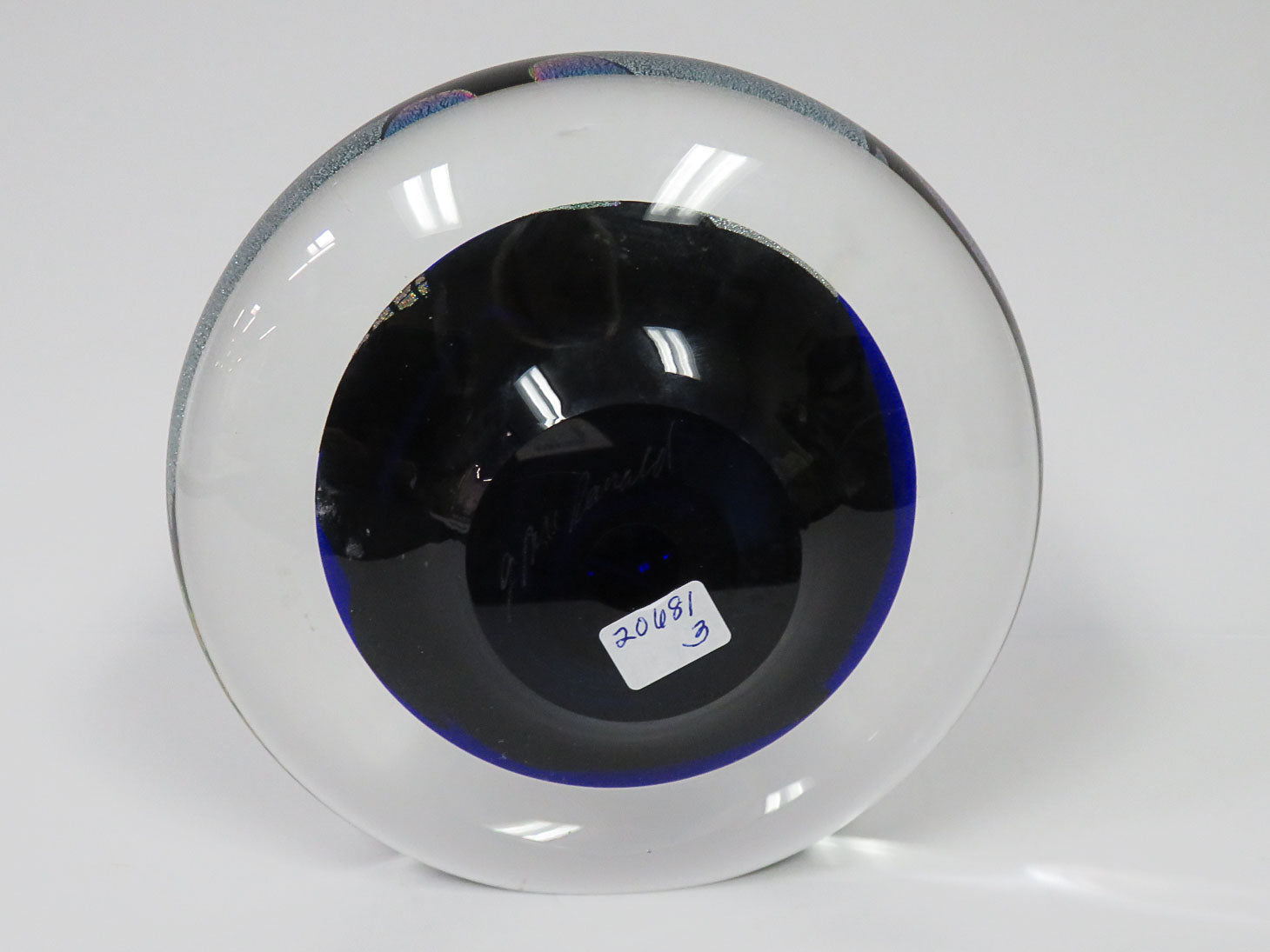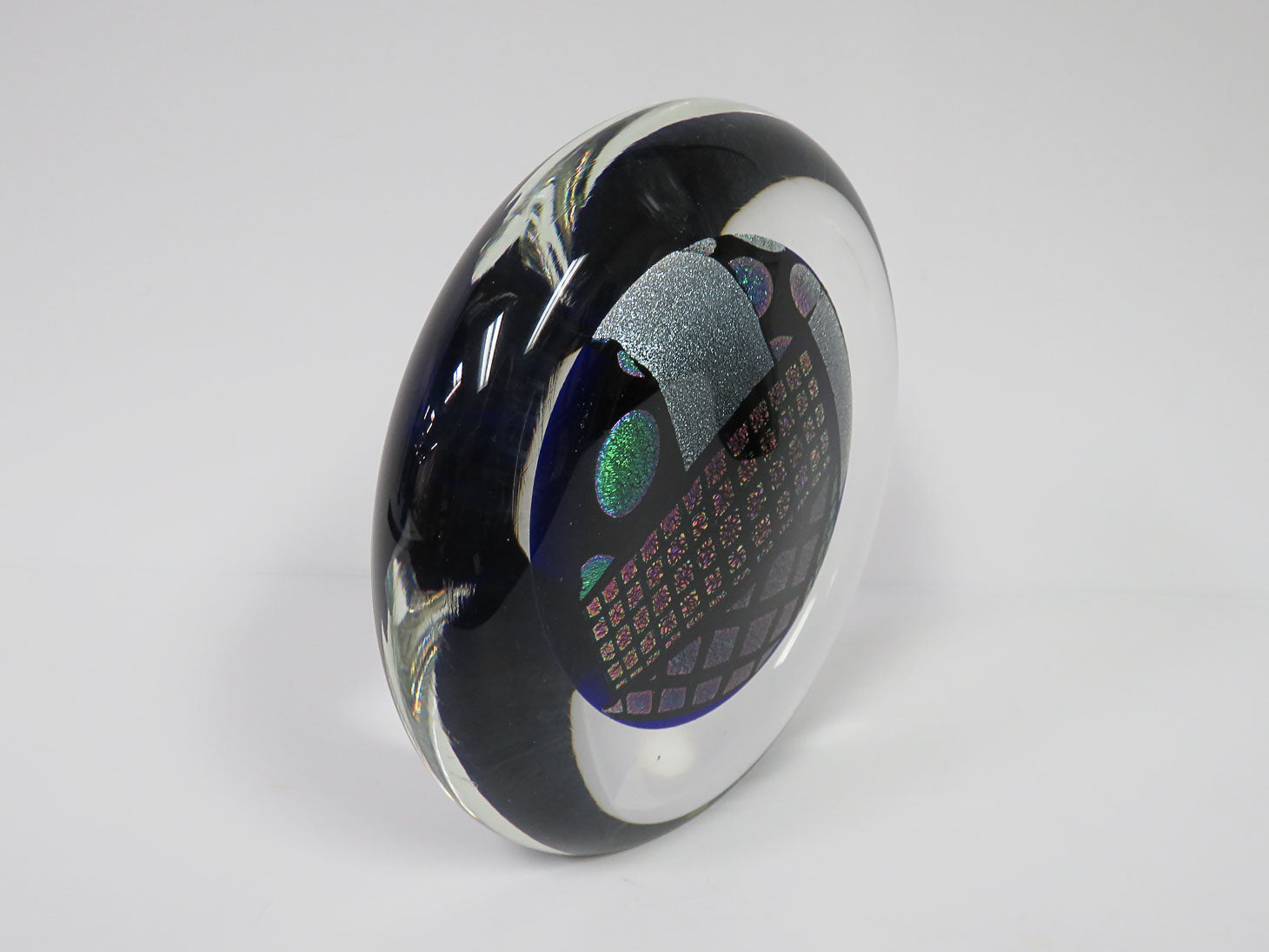 Item Number: 20681-3 By John McDonald, Iridescent, multicolored disc shaped design, self standing. 6.5" D