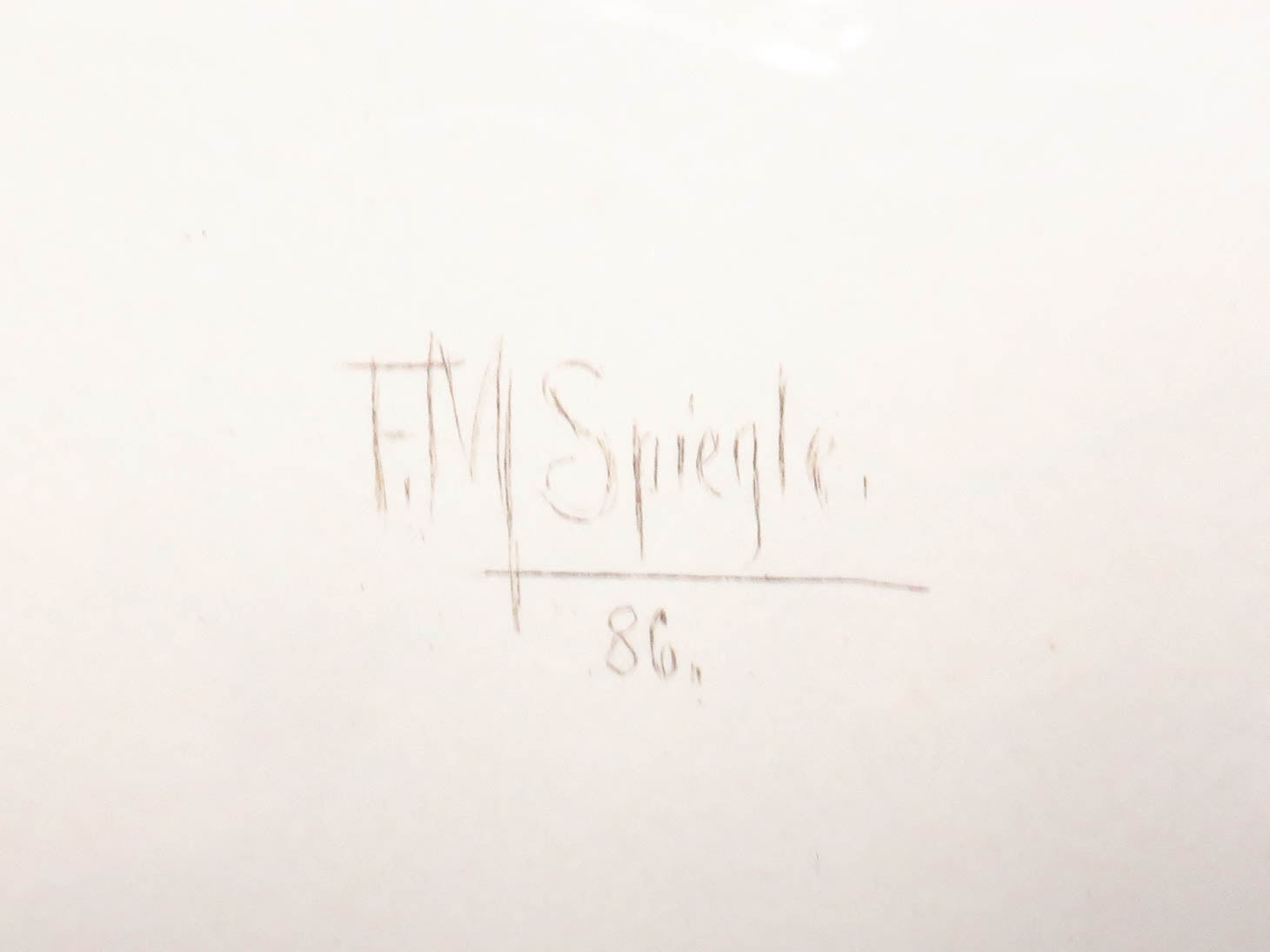 Double matted, cupid child resting chin in hands, by FM Spiegle.