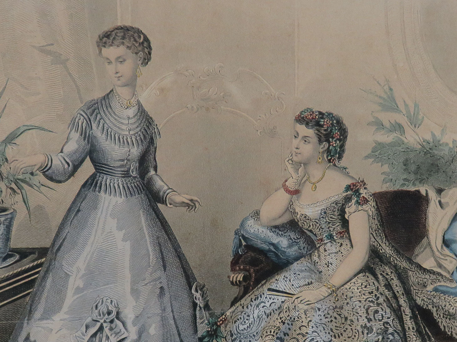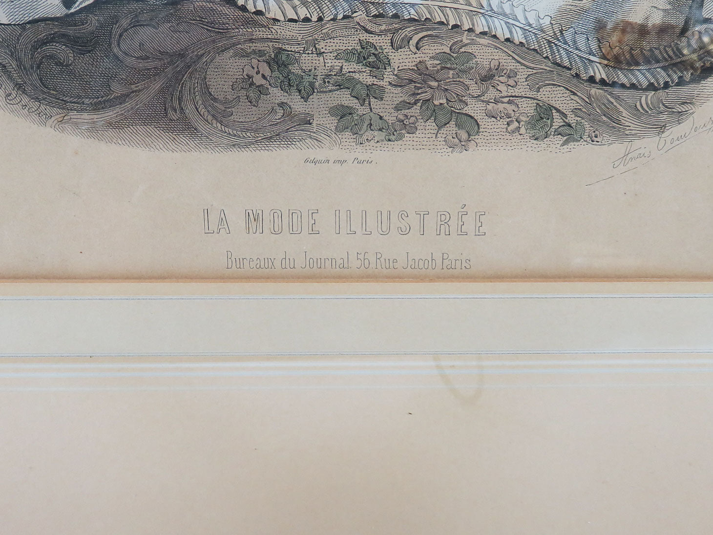 Print for LaMode Illustree, Victorian Era fashion magazine, in gold frame