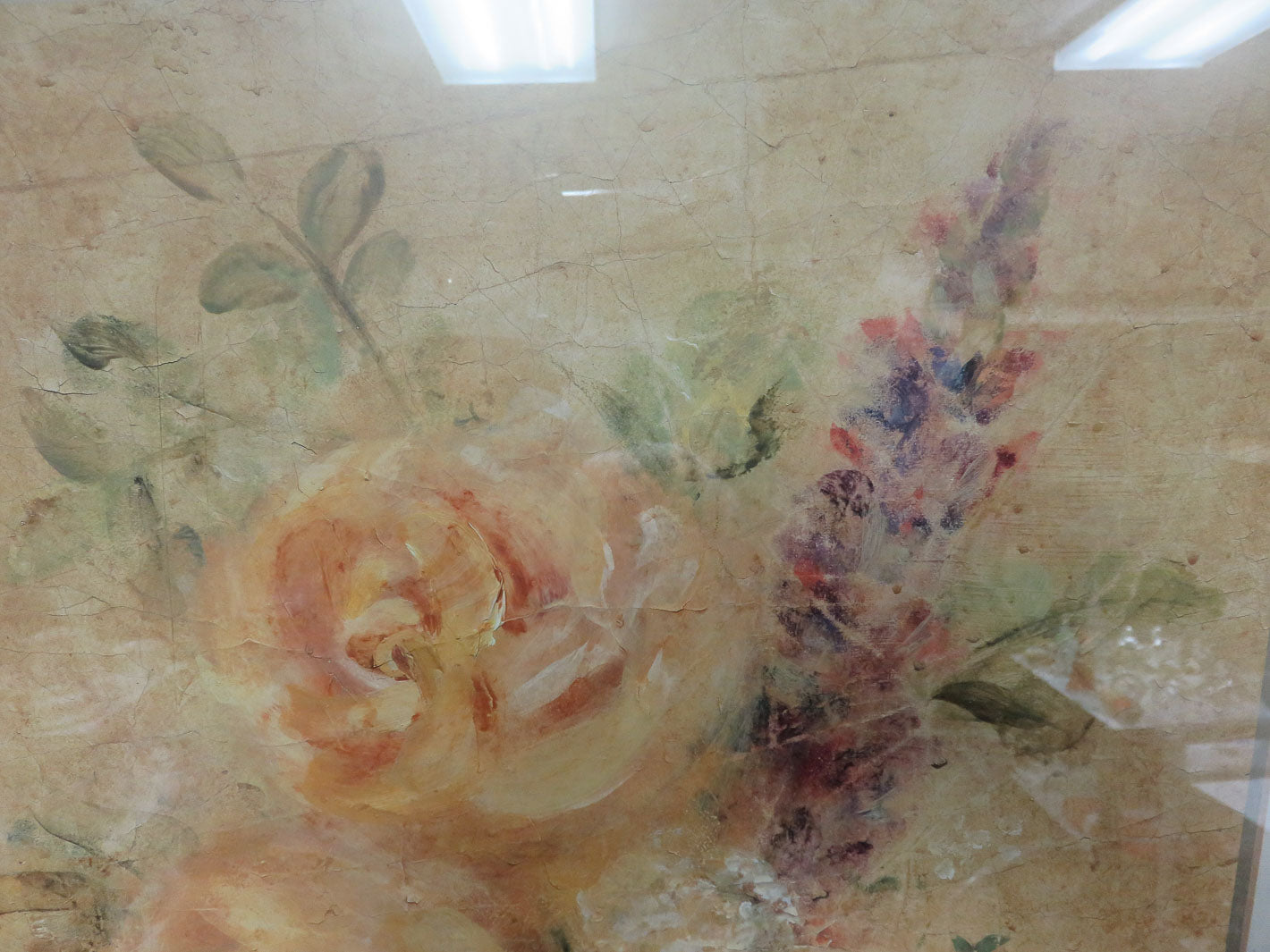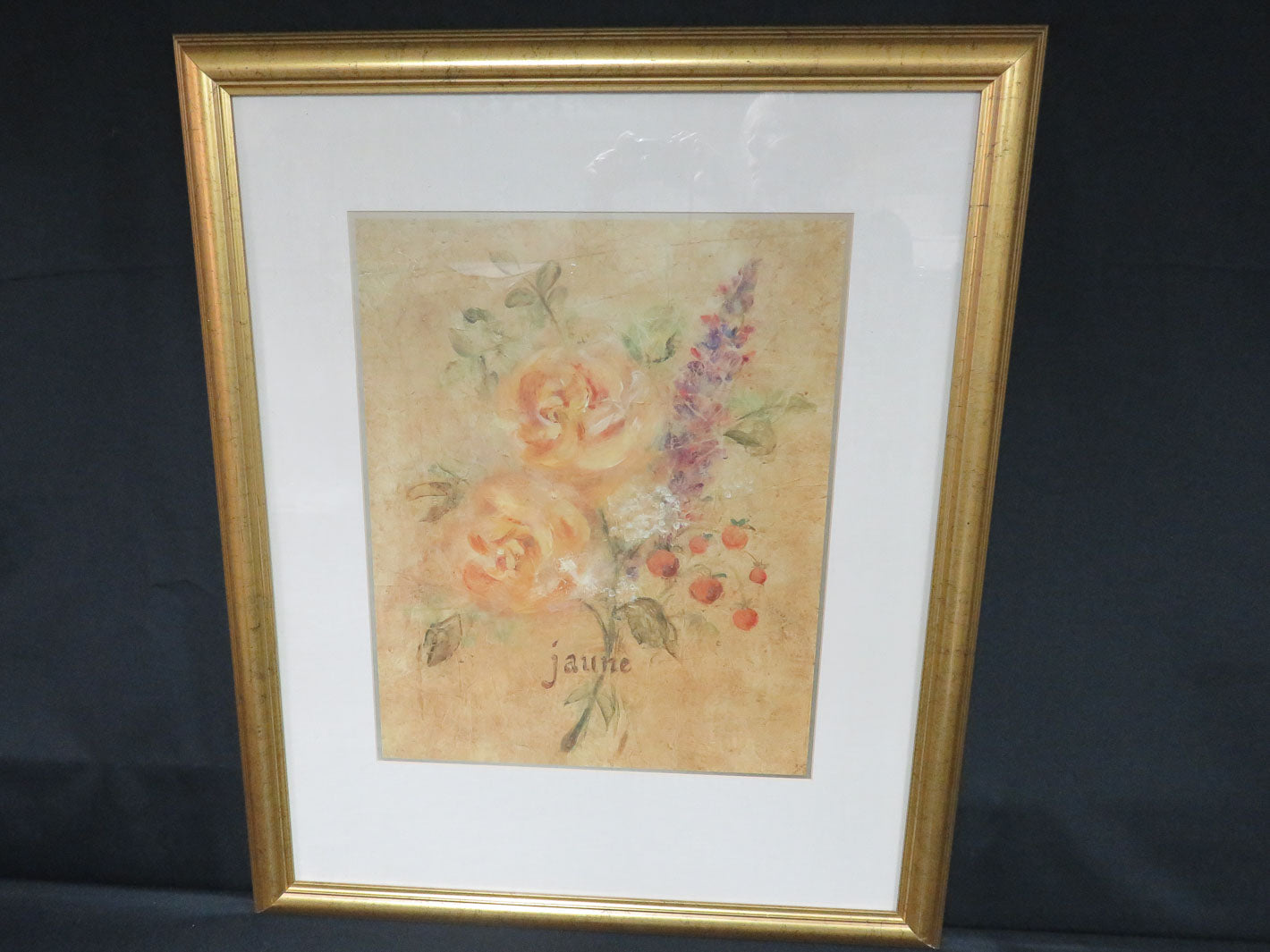 "Jaune", peach and yellow roses, cream mat, gold frame 27" x 33.5"