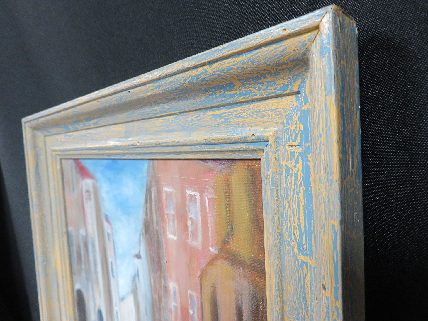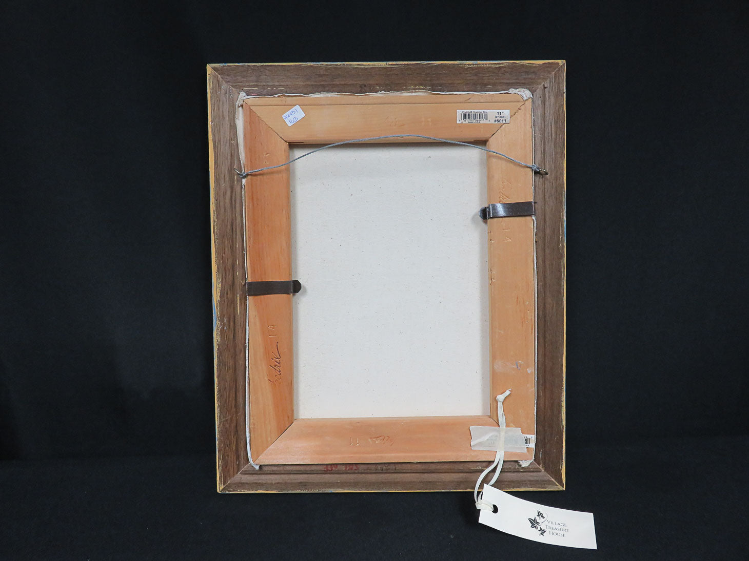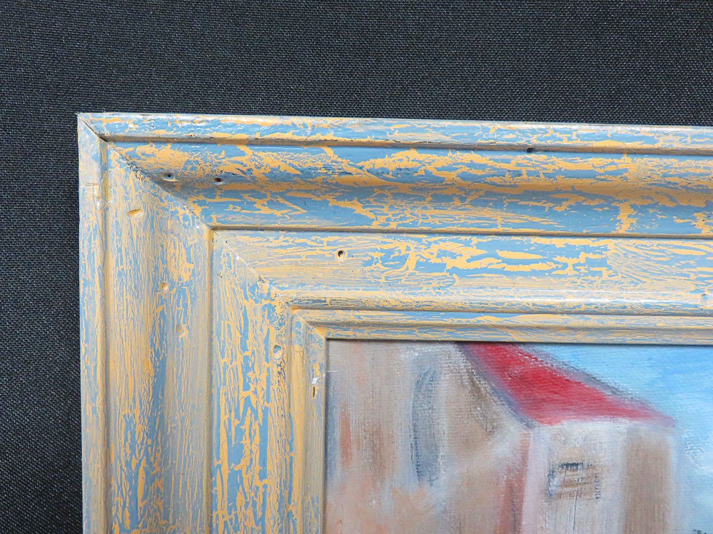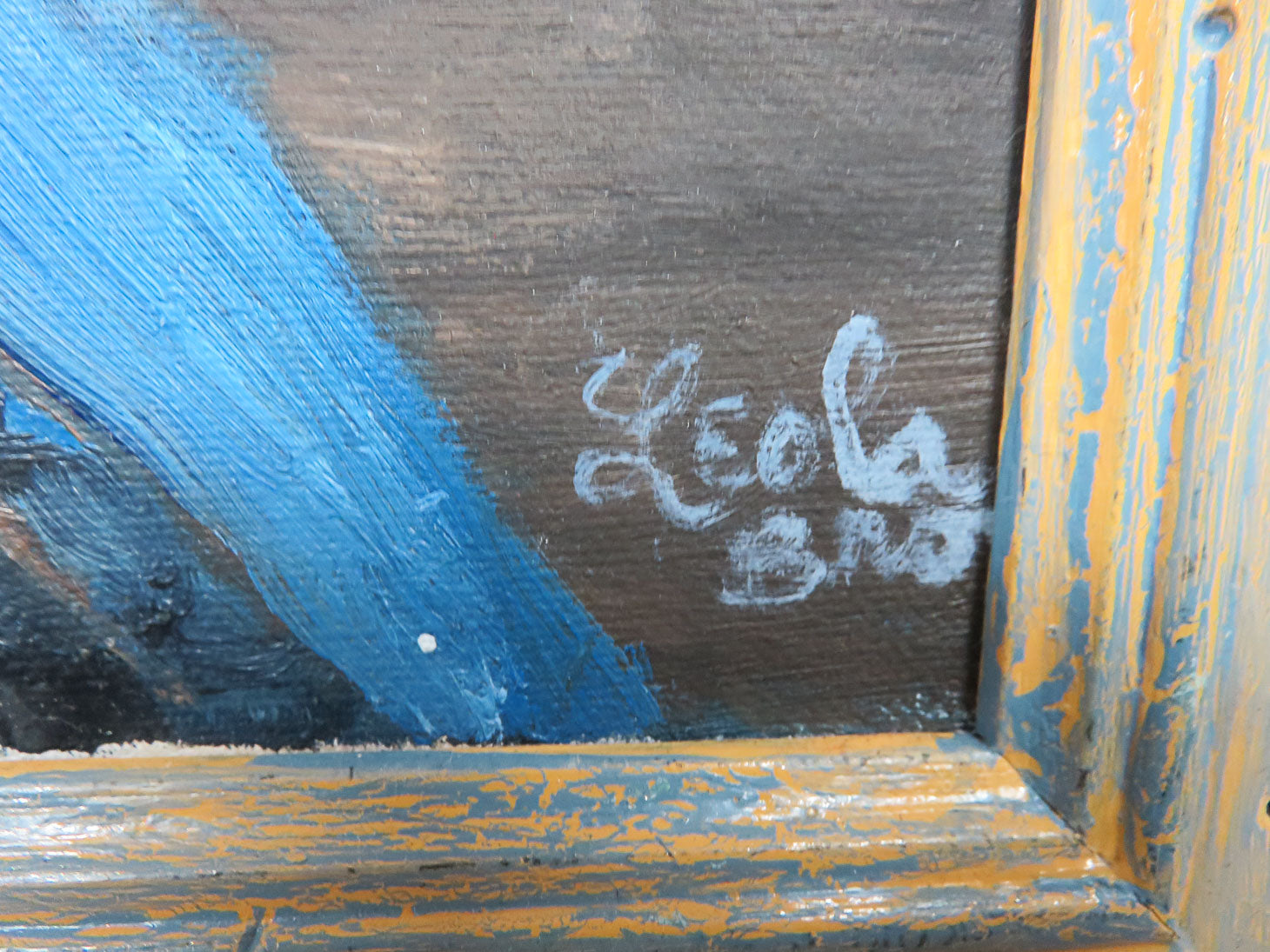 Leola Brown artist, blue and crackle-yellow distressed frame