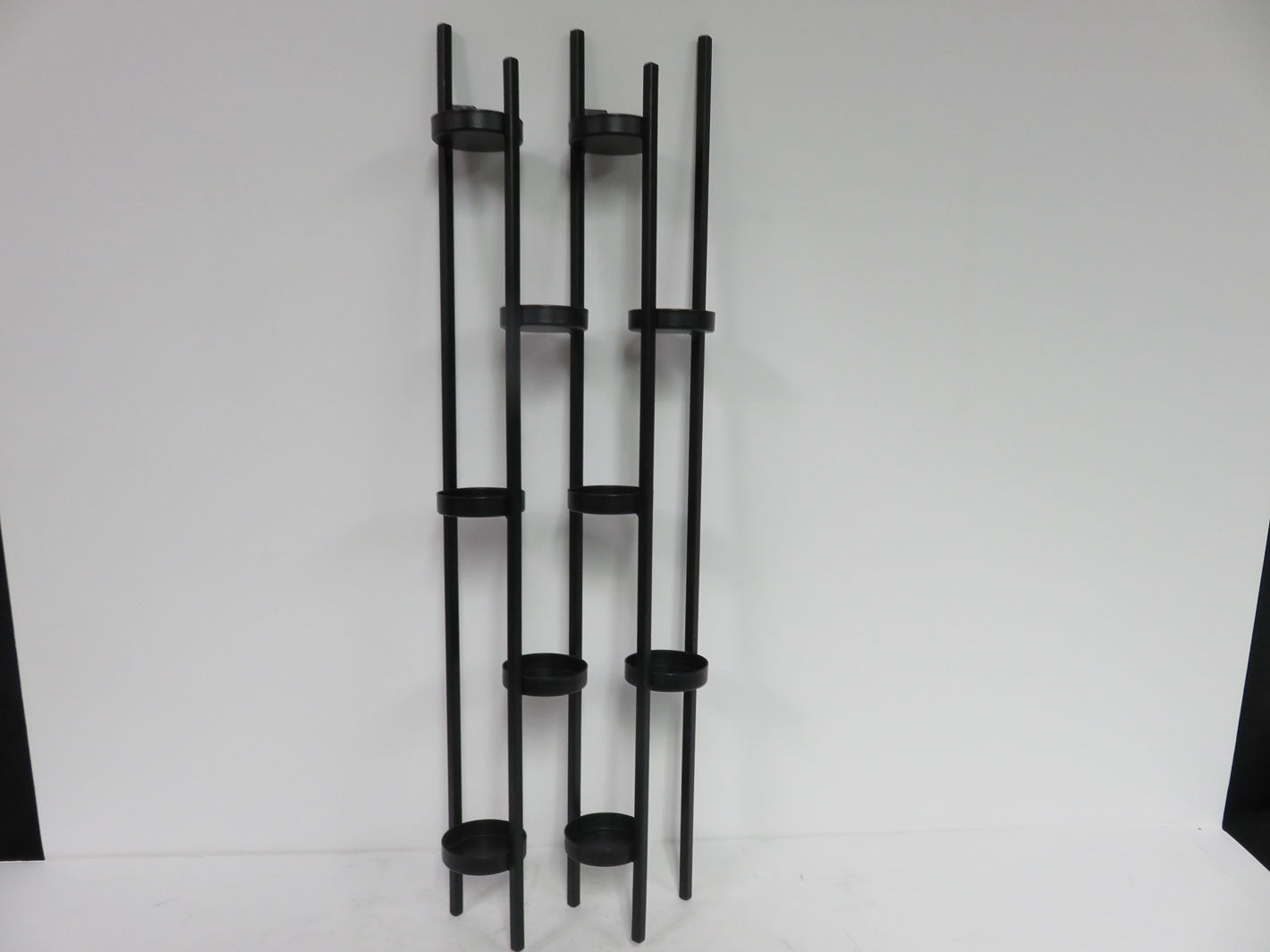 10 votive holder, five tier tower, black metal, brackets for hanging