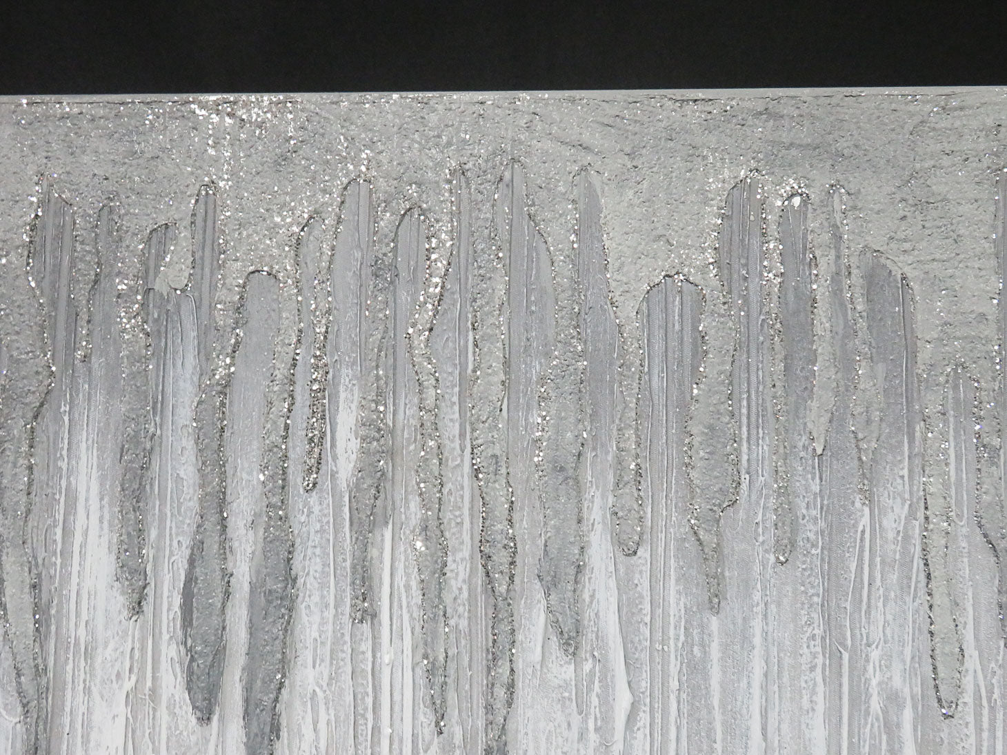 Canvas wrapped, gray and white with silver raised icicle pattern