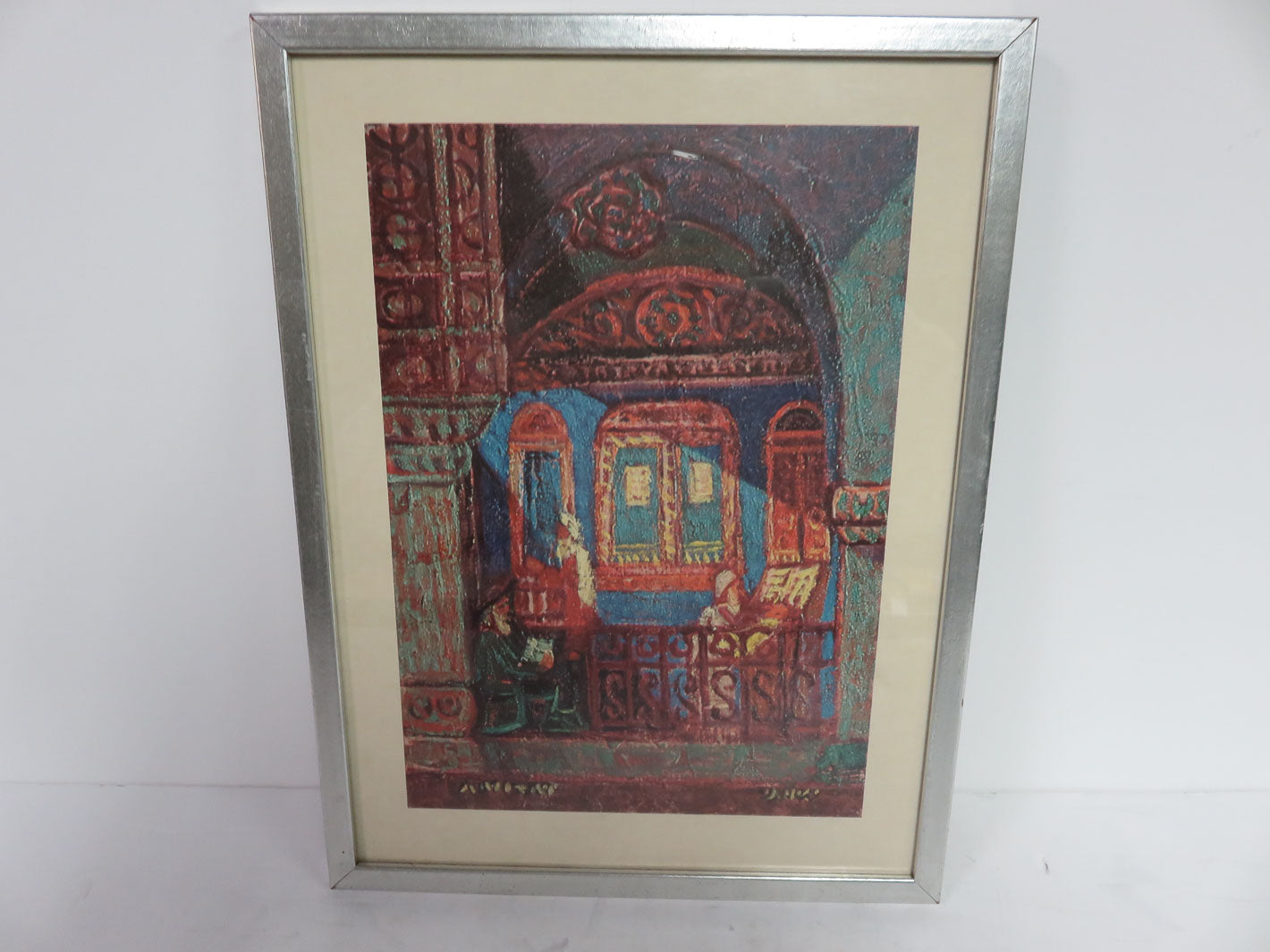 Colorful synagogue scene.
