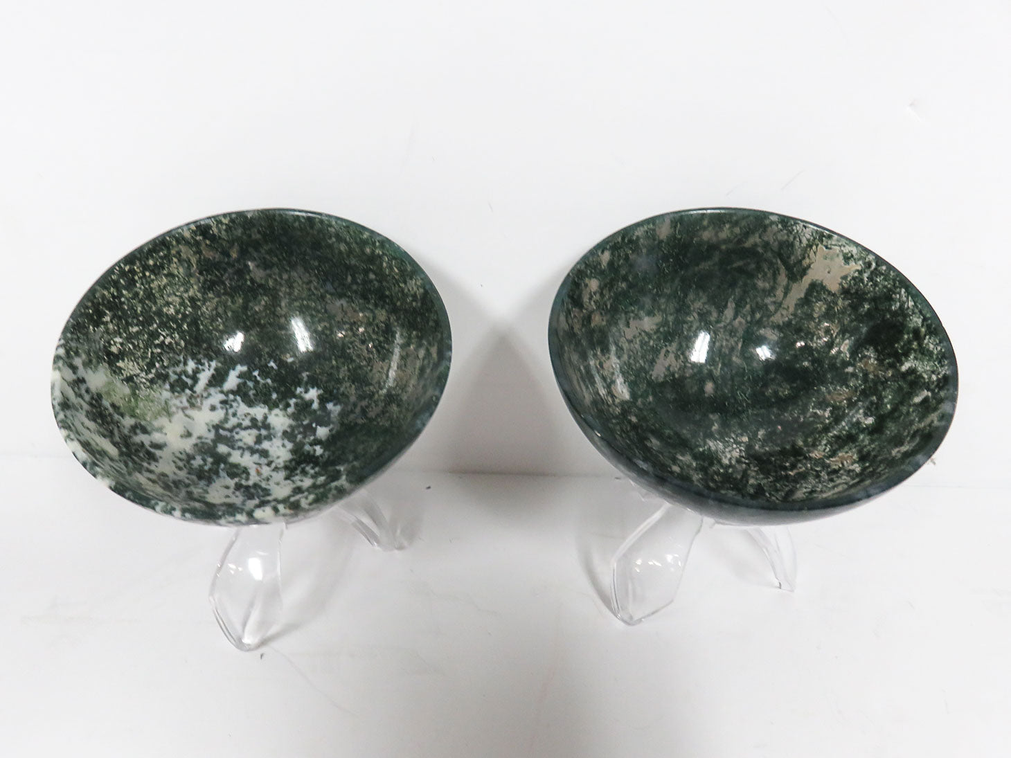 Set of 2, variegated green with white veining, thinly carved. 3.25"W x 1.25"H