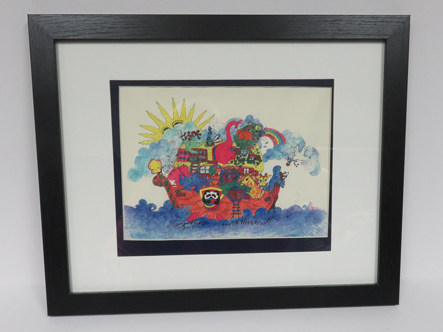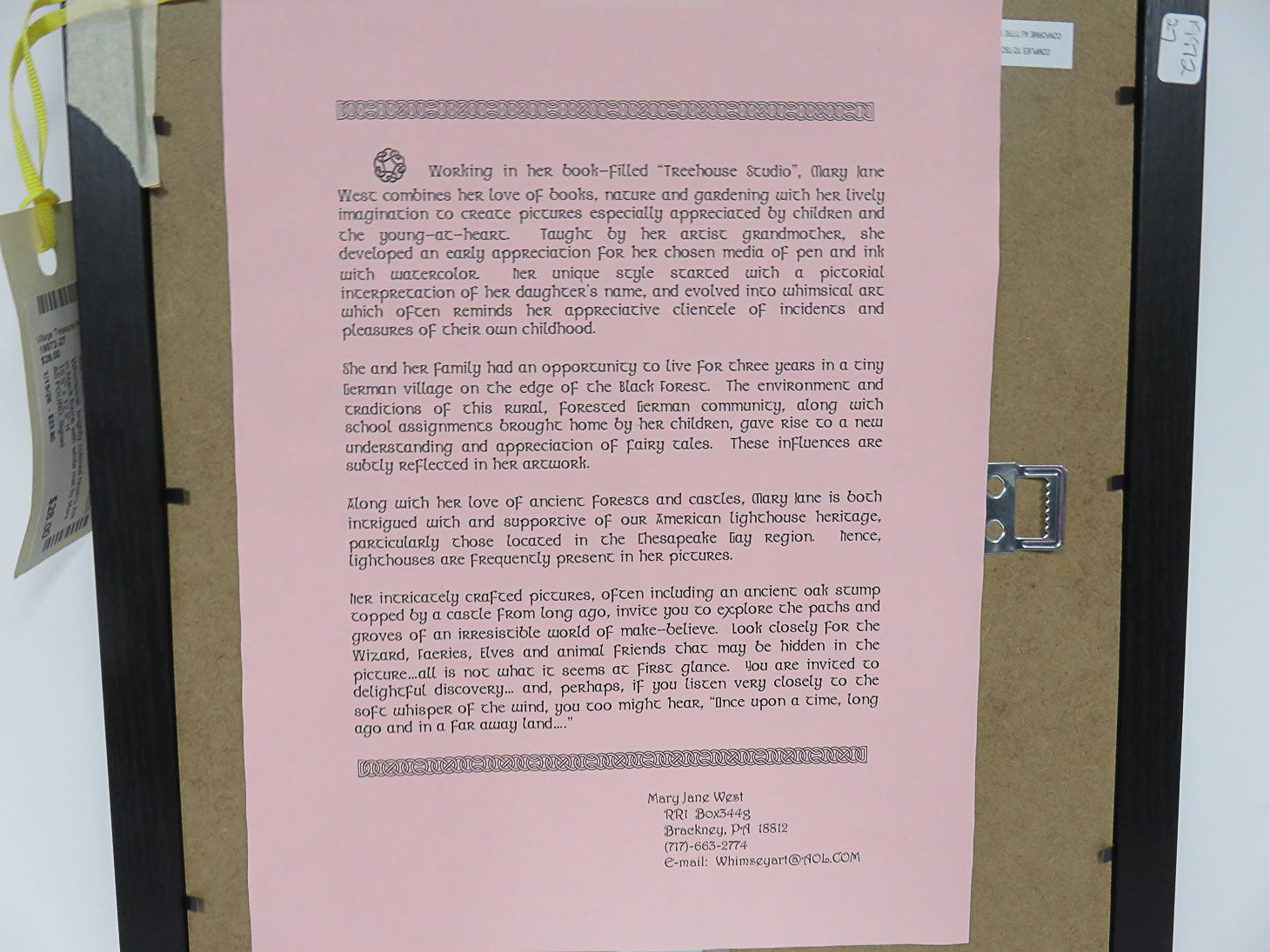 Item Number: 19972-27 Whimsical, brightly colored with white mat and black frame by Mary Jane West, mat slipped 15.5" x 12.5" H