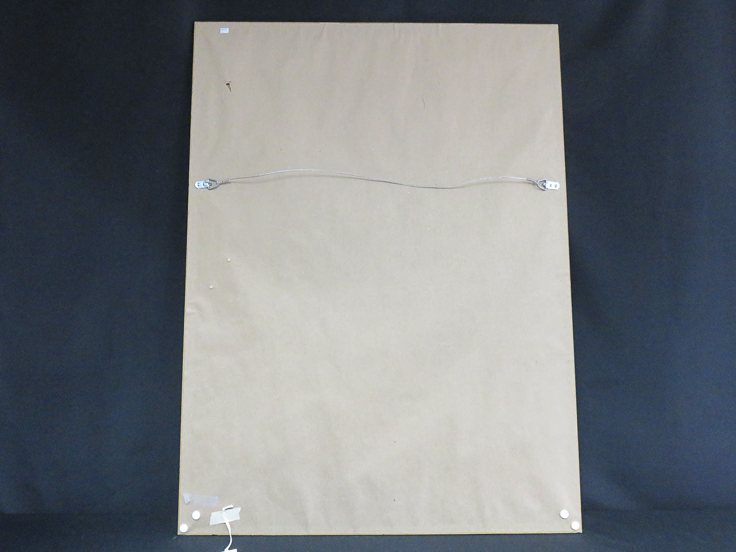 Abstract woman profile holding a fruit basket in distressed cream frame