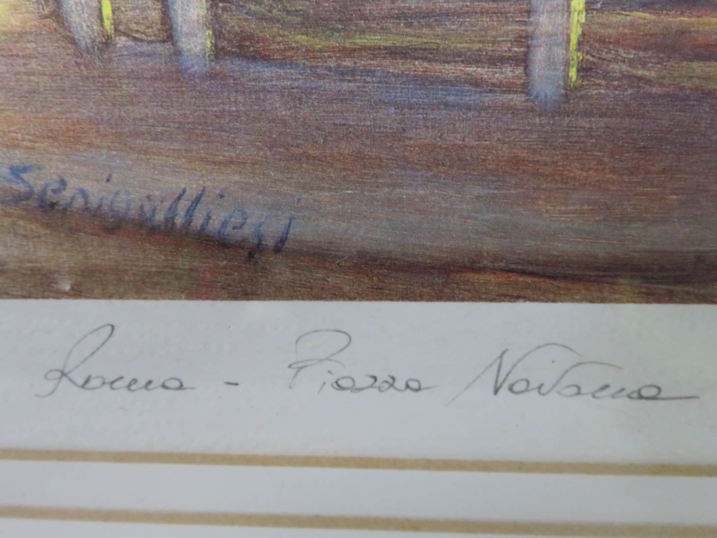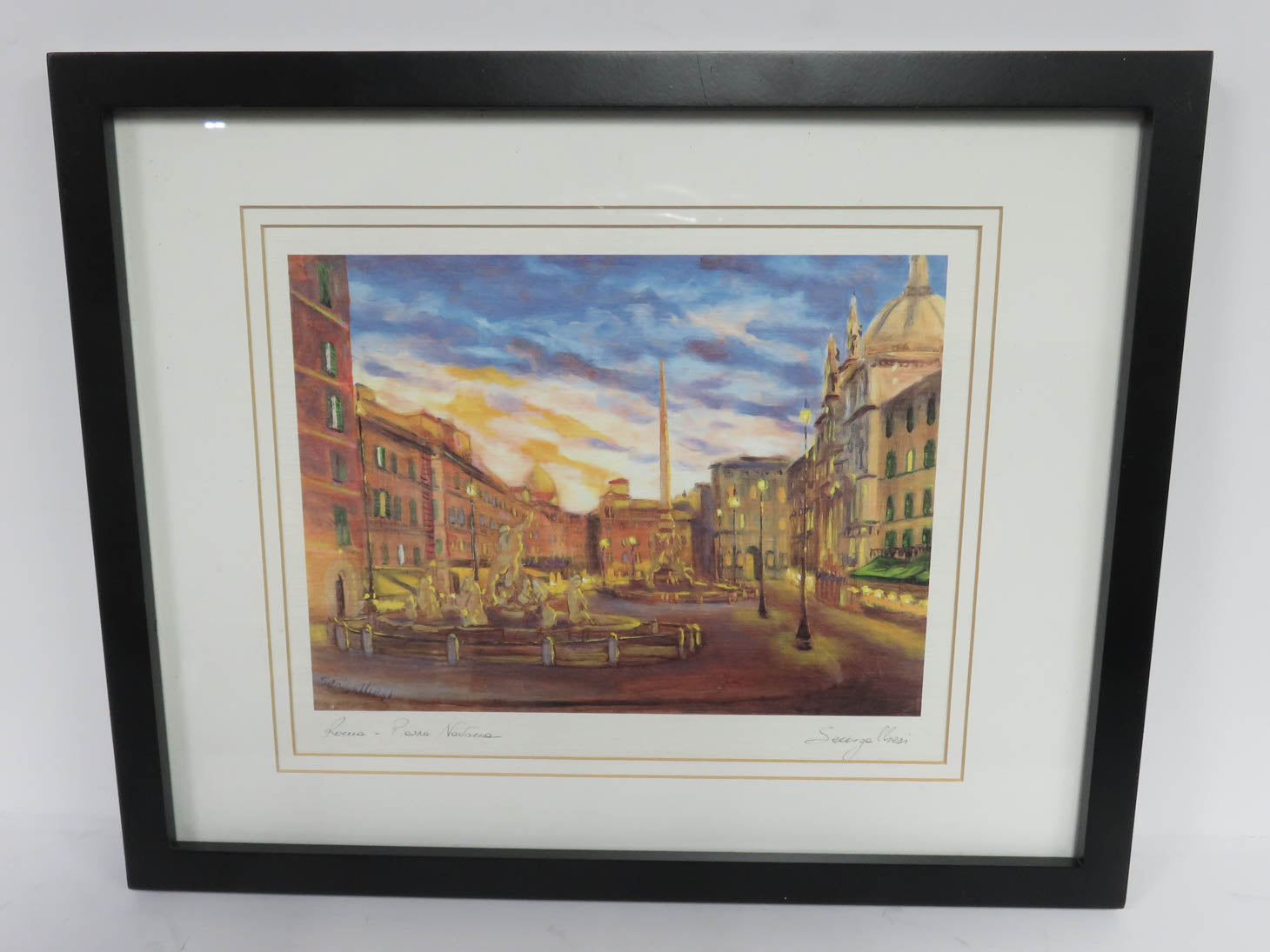 Print of "Piazza Navona" with golden colors in black frame and double cream color mat.