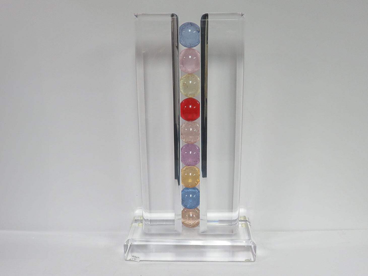 Modernist table sculpture. Contemporary columns with 9 removable crackle balls of various colors. Israeli born, Los Angeles based artist.