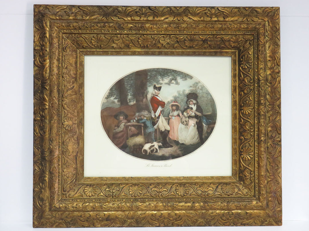 Engraving of St. James Park Scene in Antique Frame