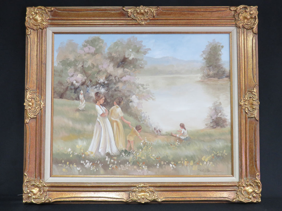 Original Oil Painting of Woman and Children