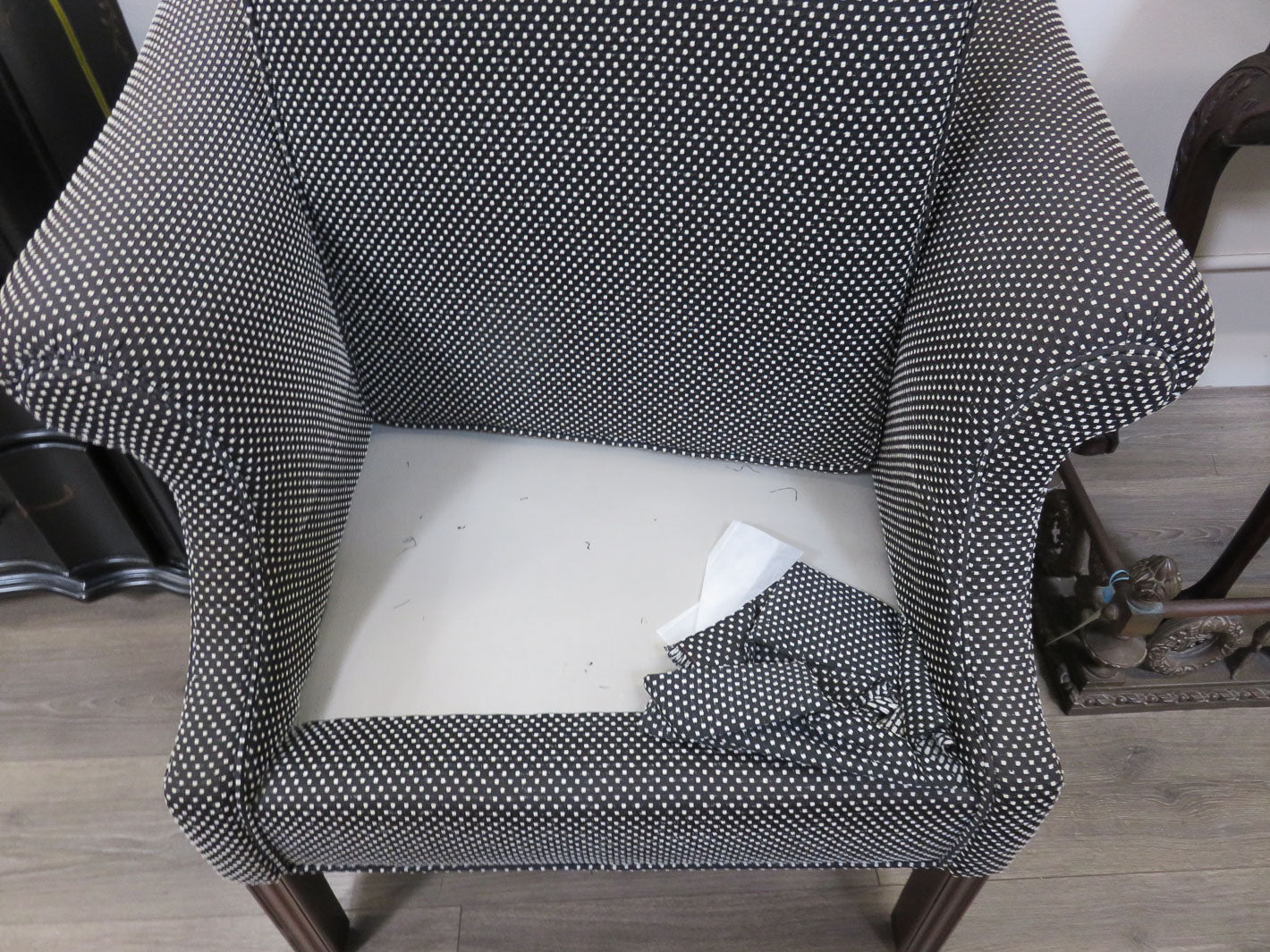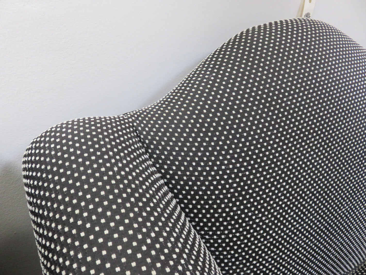 Item Number: 18245-114 Black & white pin dot, structured with carved legs and rolled arms 32" x 32" x 33"