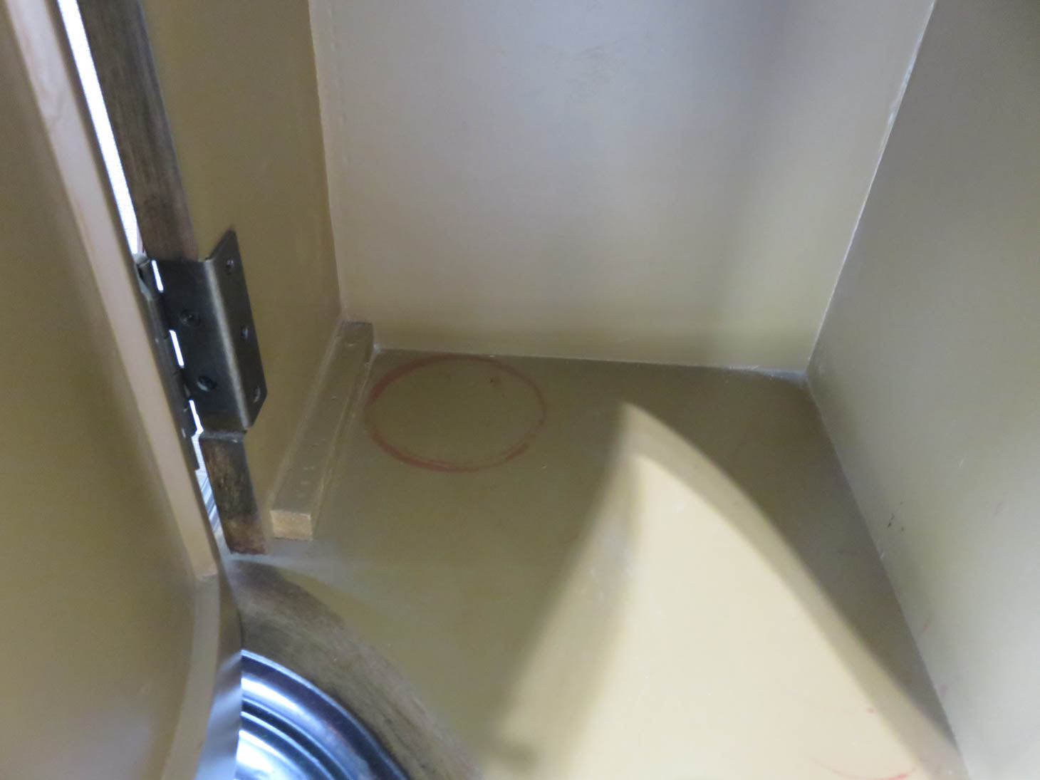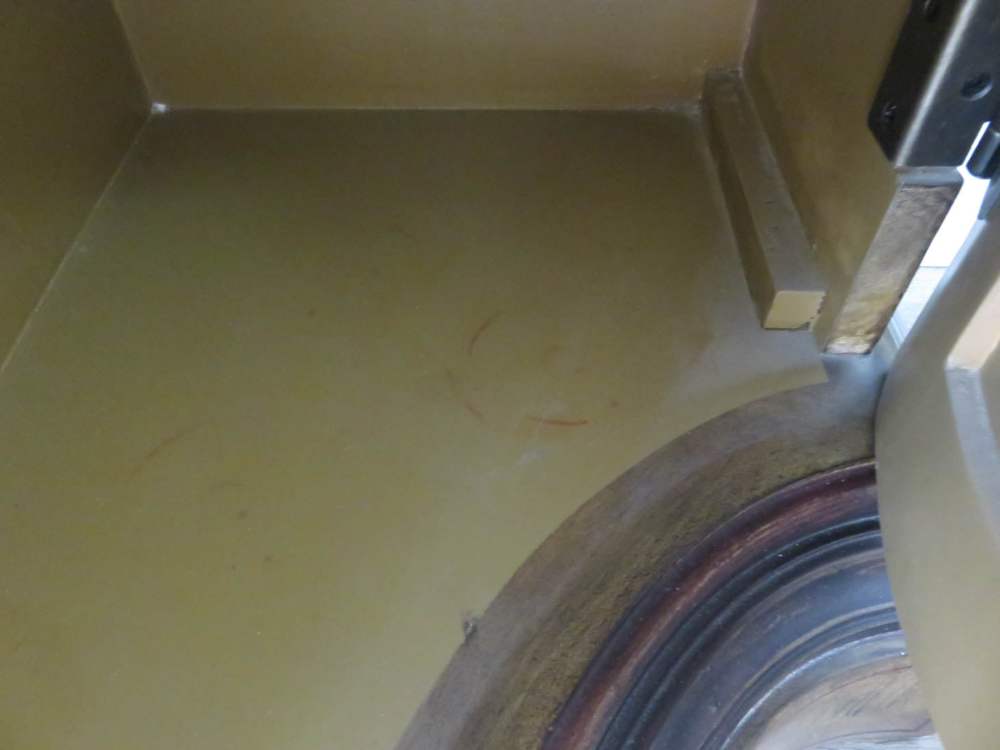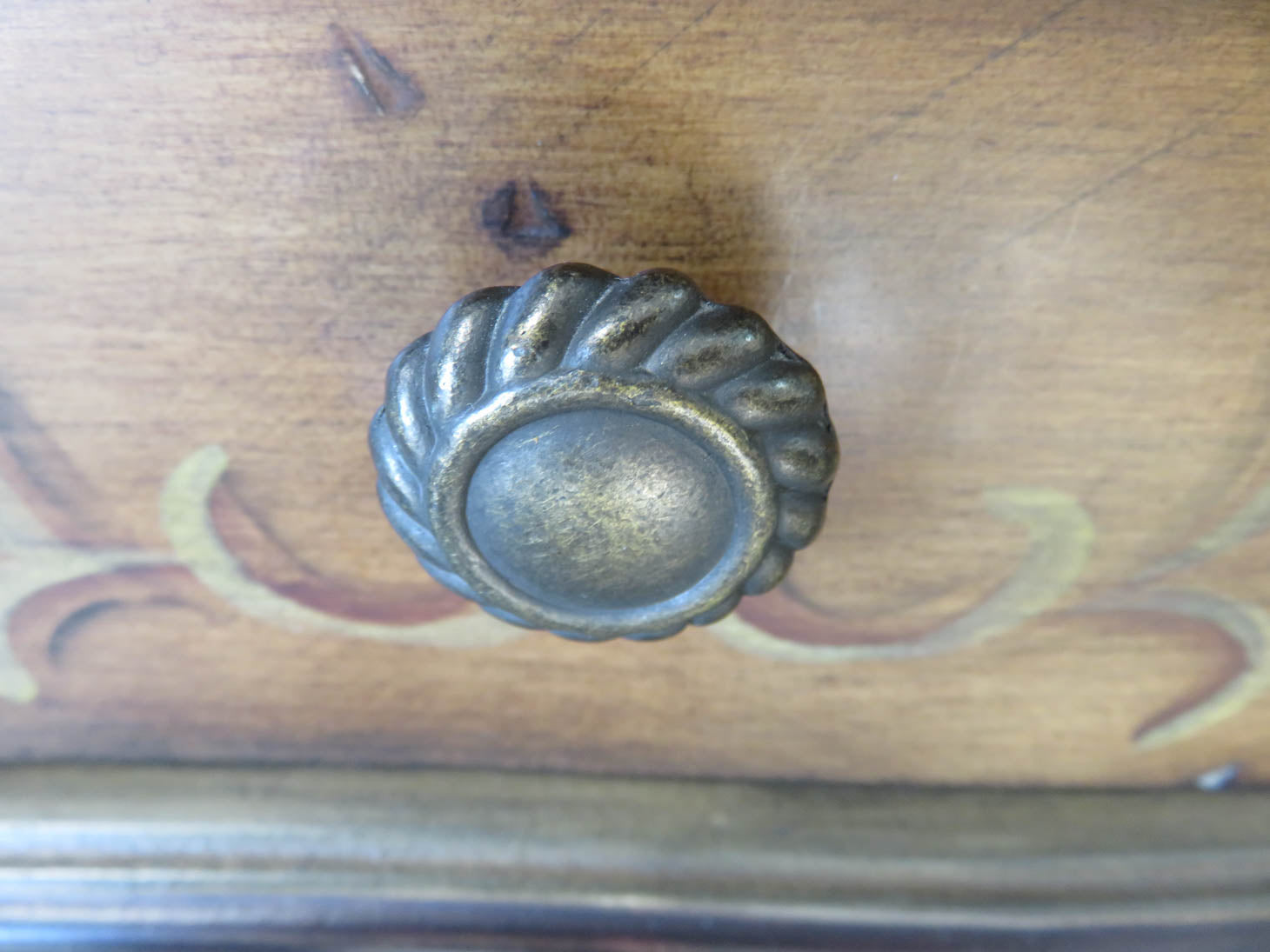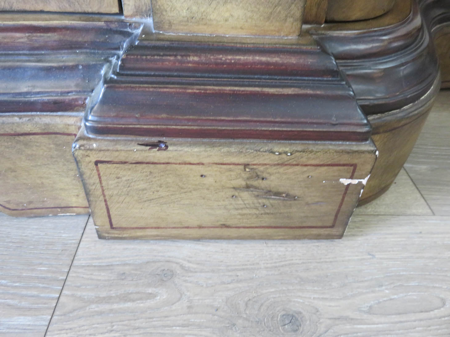 Medium wood with floral motif. Bowfront with four doors and four drawers