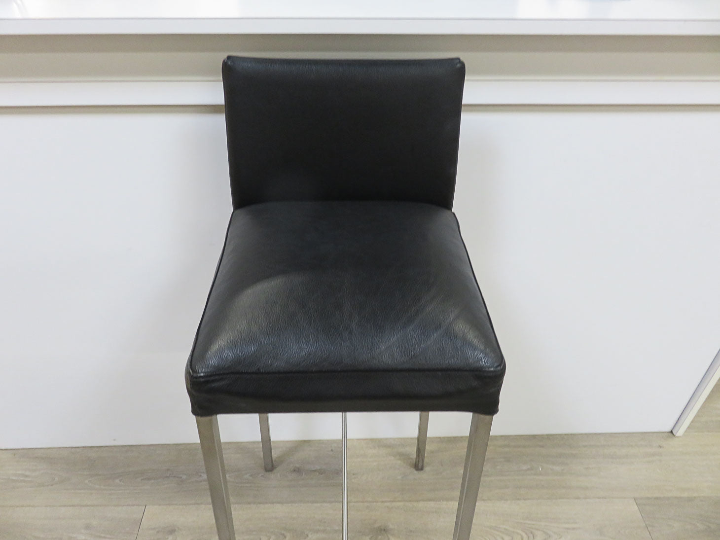 Item Number: 29660-9 Brushed chrome legs with black leather seat & back. From Design Within Reach. Two available, sold separately, #29660-3. 14" x 15.5" x 40.5" Seat 33" H