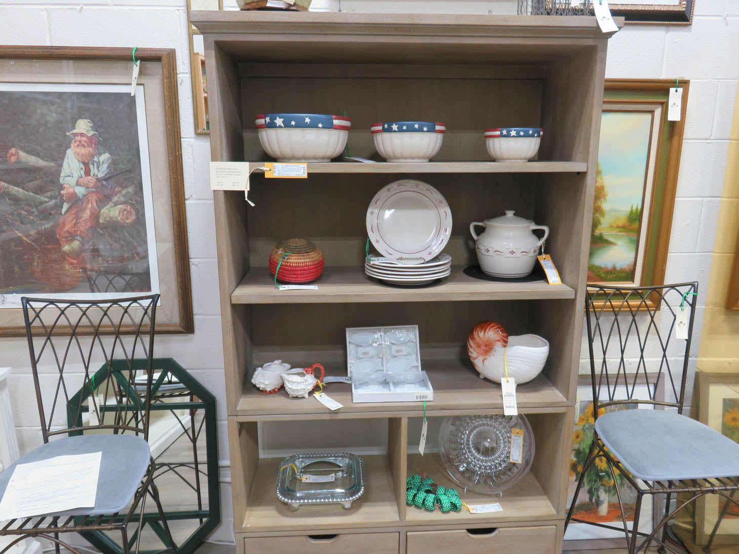 Tribeca large, weathered look using kiln dry hardwoods. Three shelves, adjustable. Double cubbies with one set of pull-out boxes at base.