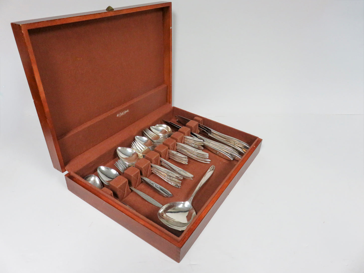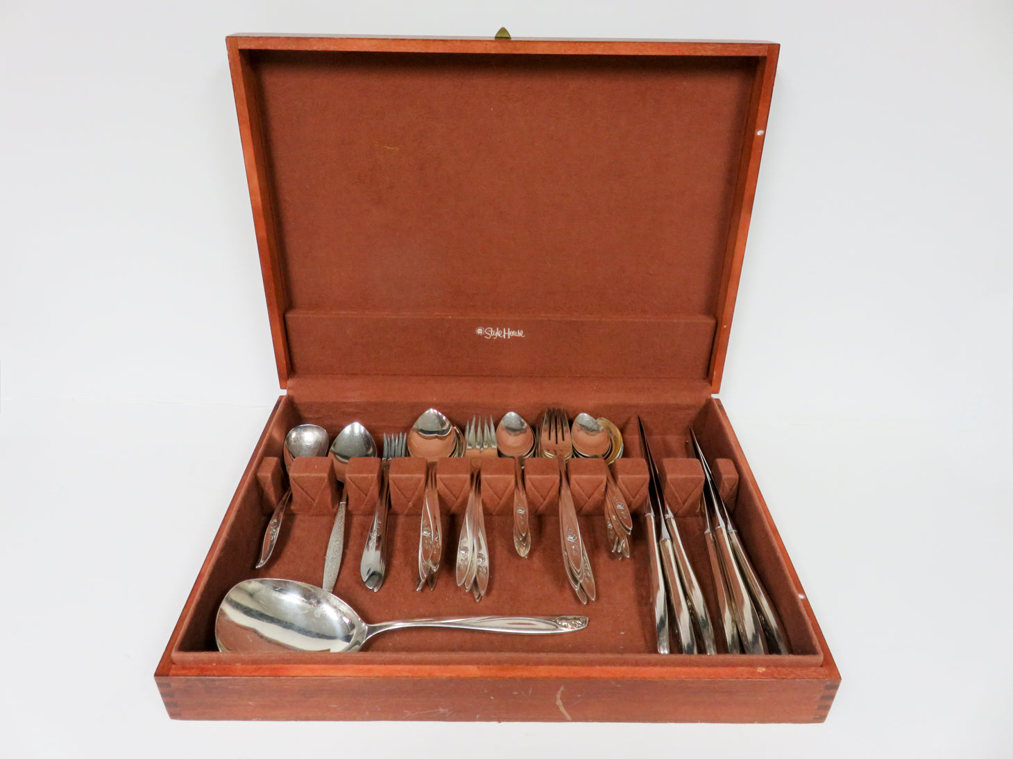 Seven, 6-piece place settings of "Meadow Rose" flatware plus assorted serving pieces.