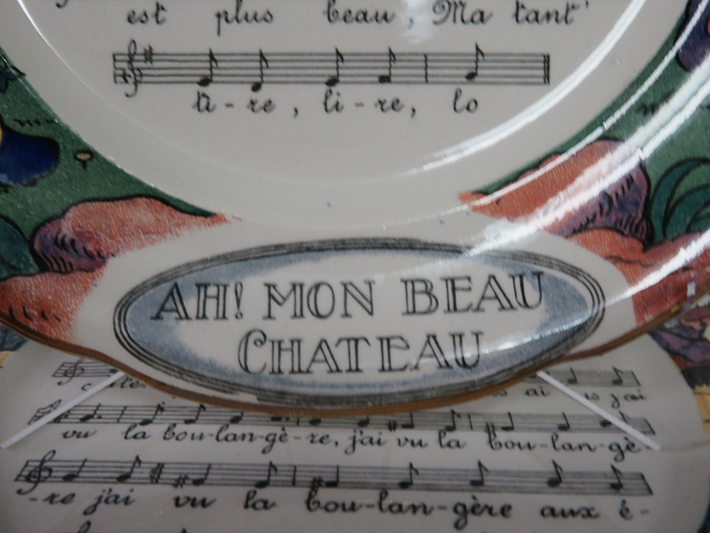 Set of 7, musical notes for French songs, gold rim