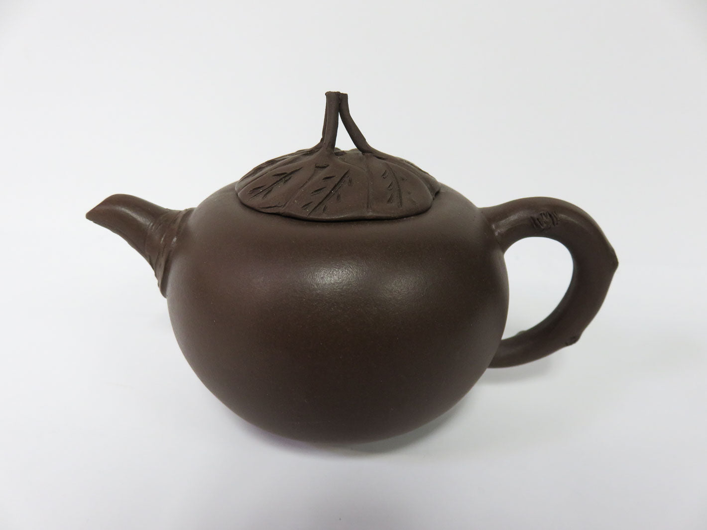 Chinese Yixing teapot. Brown mat with leaf motif on lid (2 pcs)