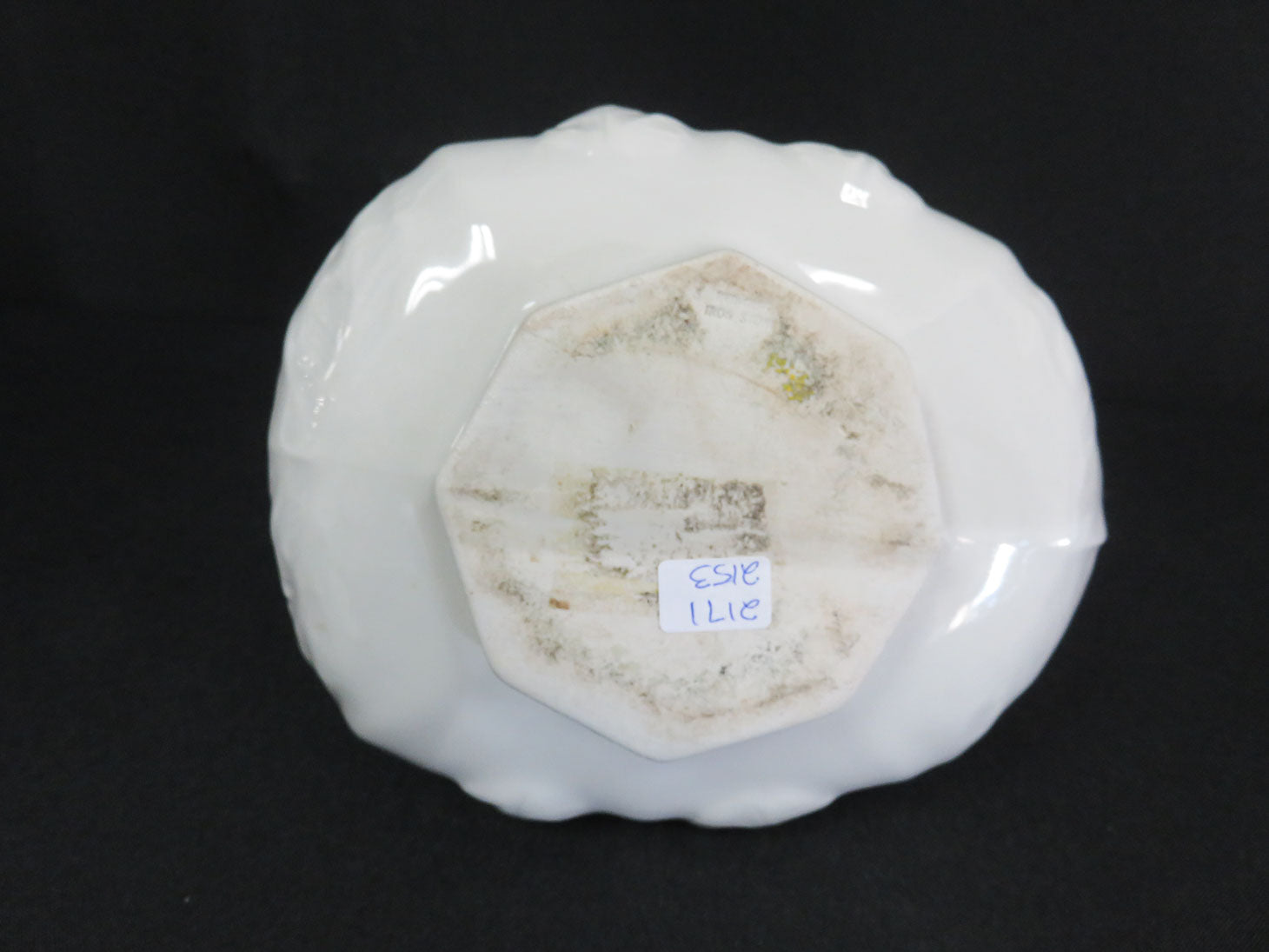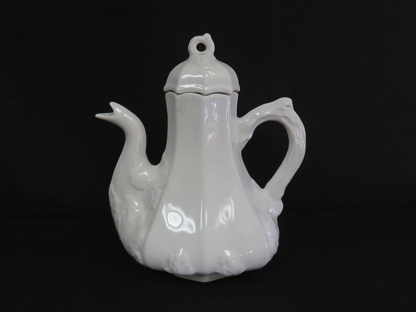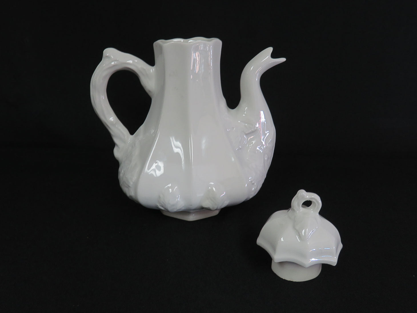 White with embossed leaf pattern, attached branch handle. 2 pieces