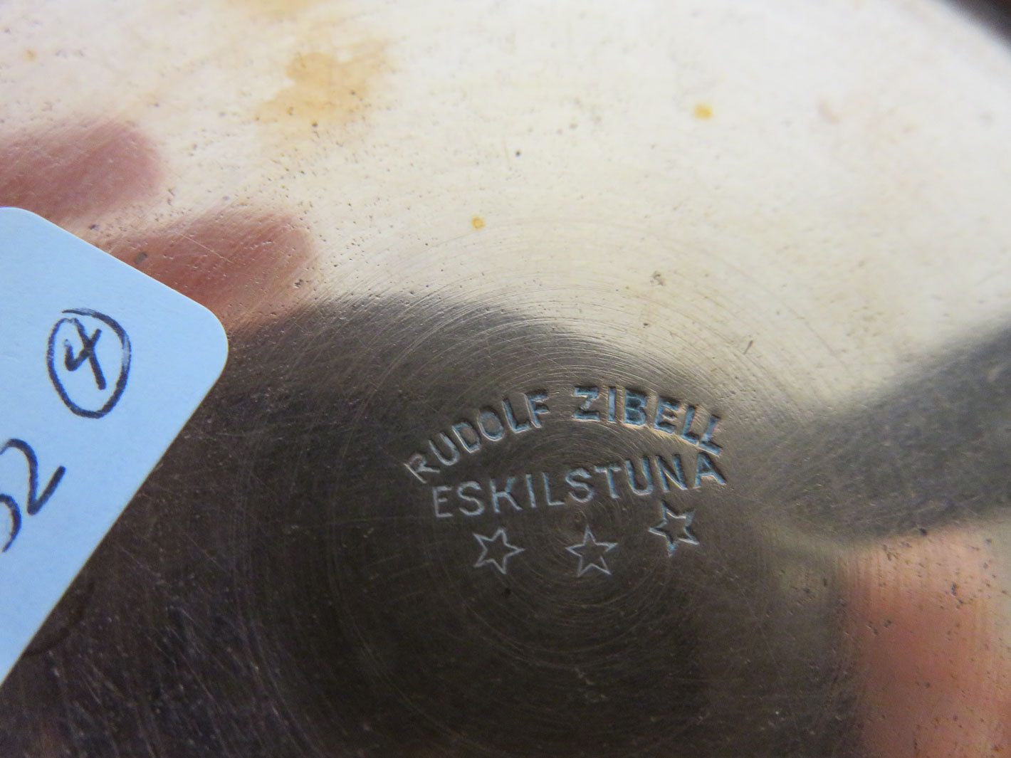 Item Number: 9992-7232 Rudolph Zibell Eskilstuna, brass handles, each with an underplate. 4 pieces Sugar bowl: 4" x 2" H