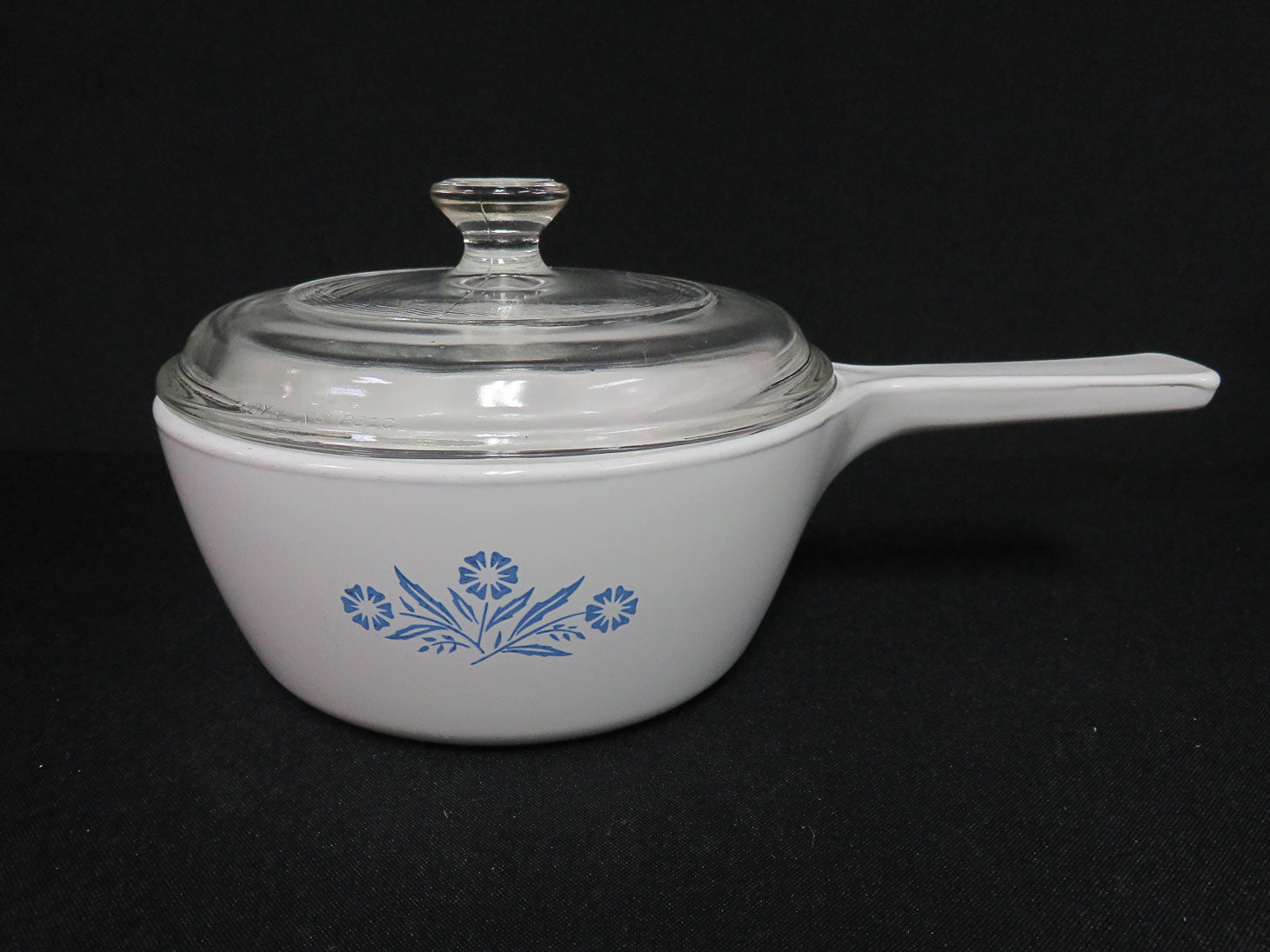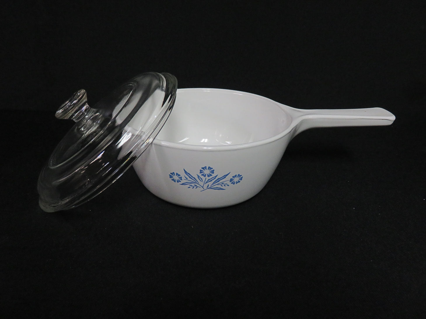 Blue Cornflower with handle and Pyrex lid. 1.5 pint