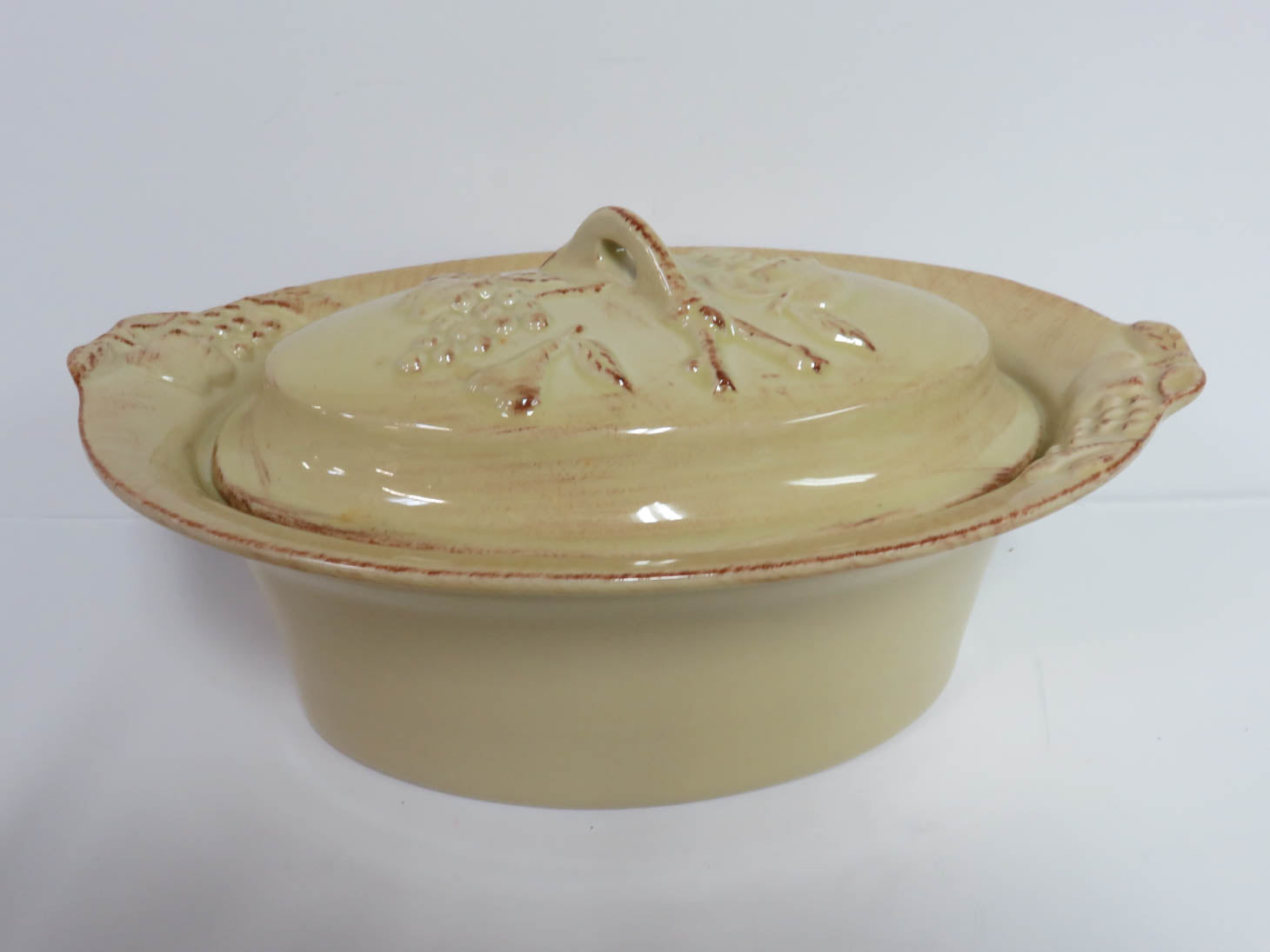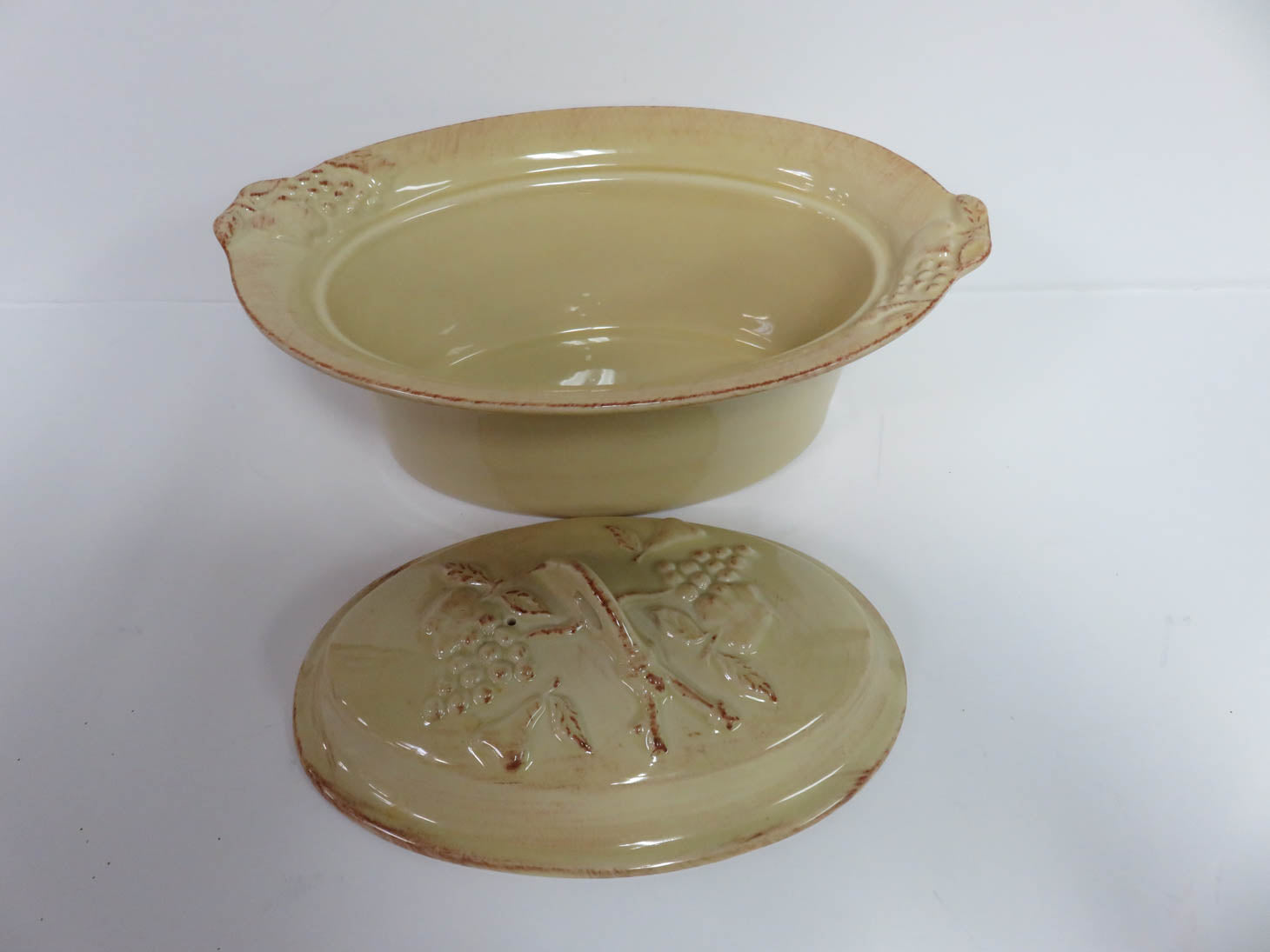 Grape leaf design with handles, pale yellow. 2pieces