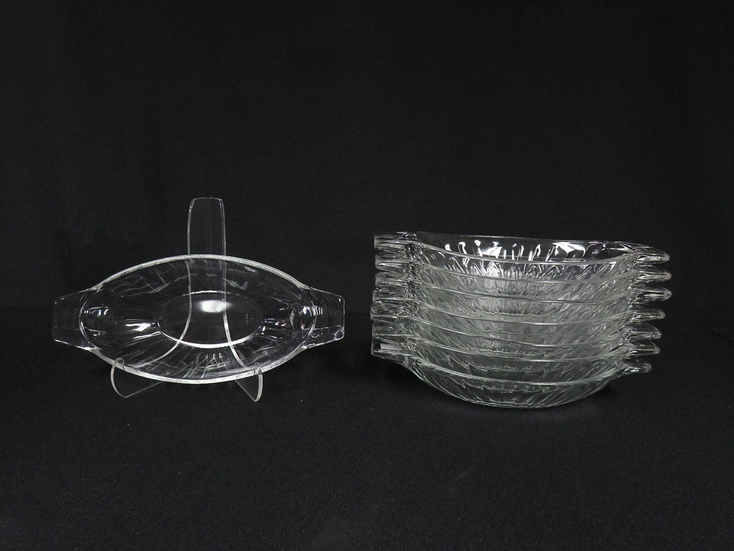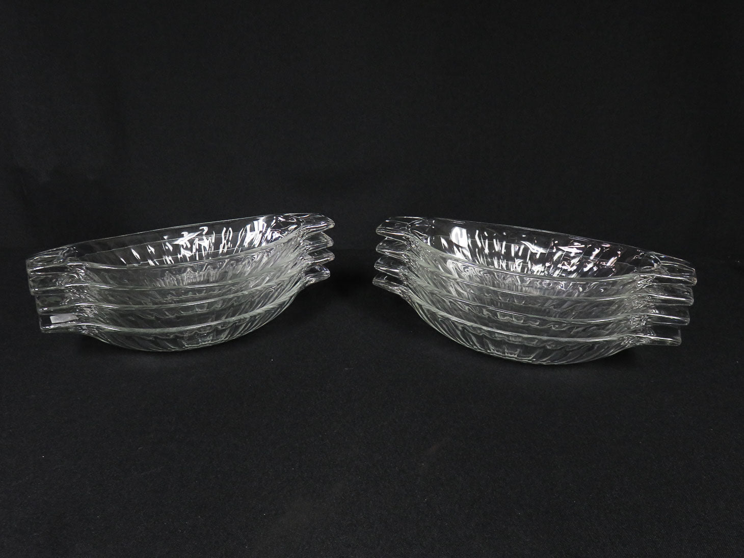 Set of 8, ice cream sundae/banana split boats. Ribbed design with handles.