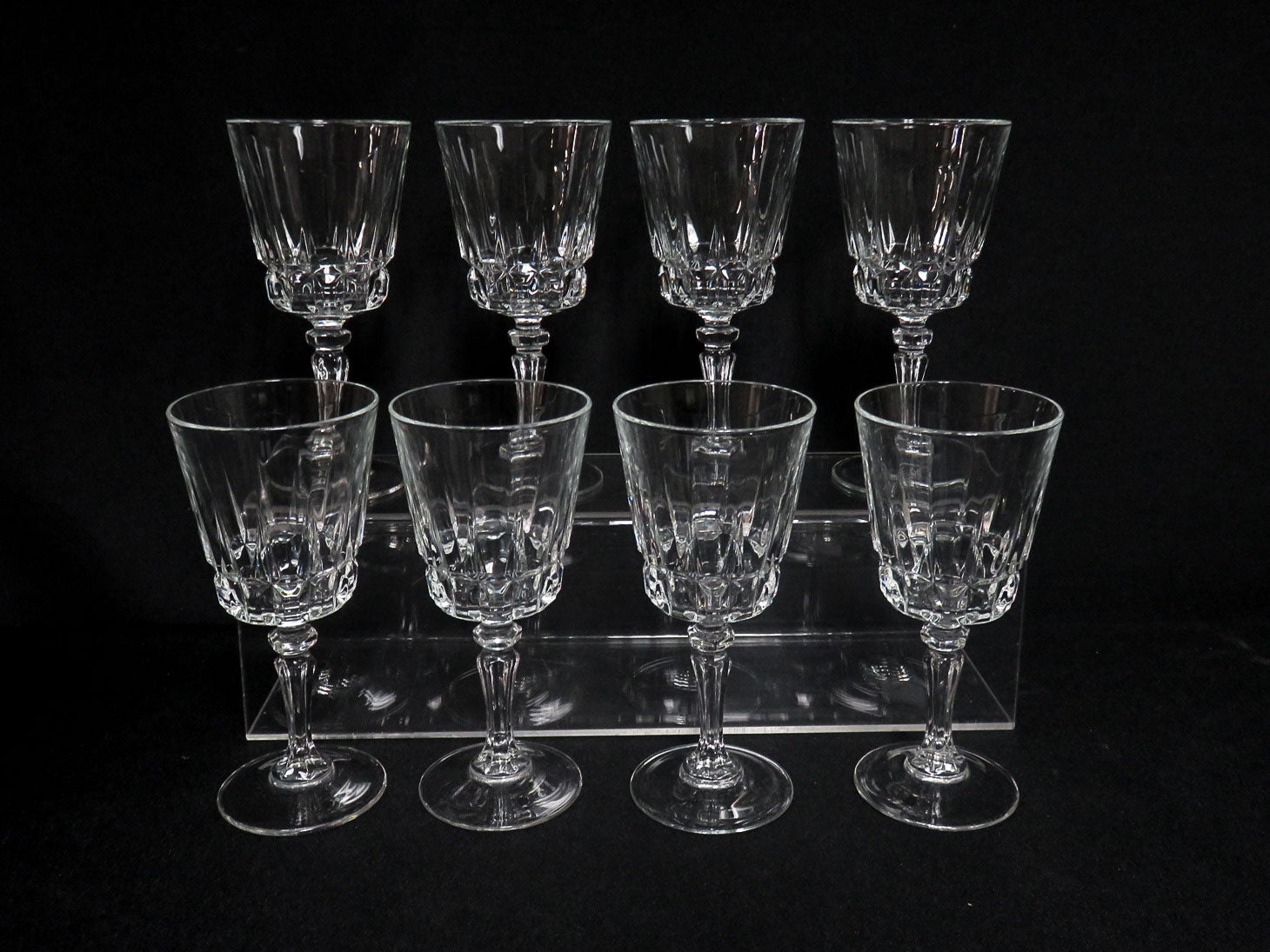 Set of 8 "Lady Victoria" Chantelle". Faceted stem, square cut along base
