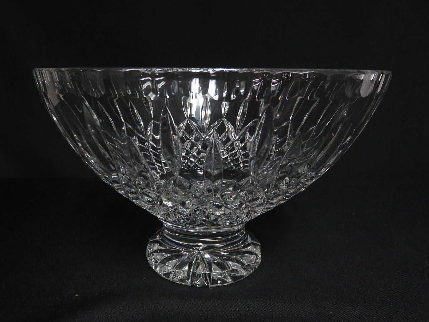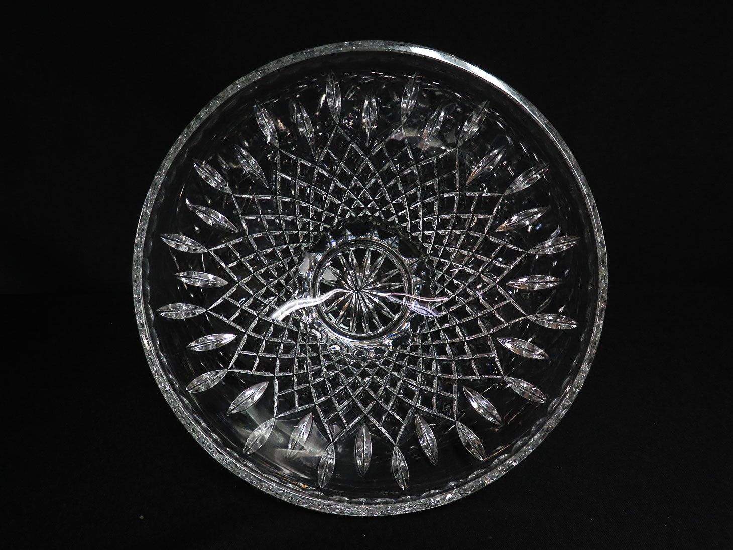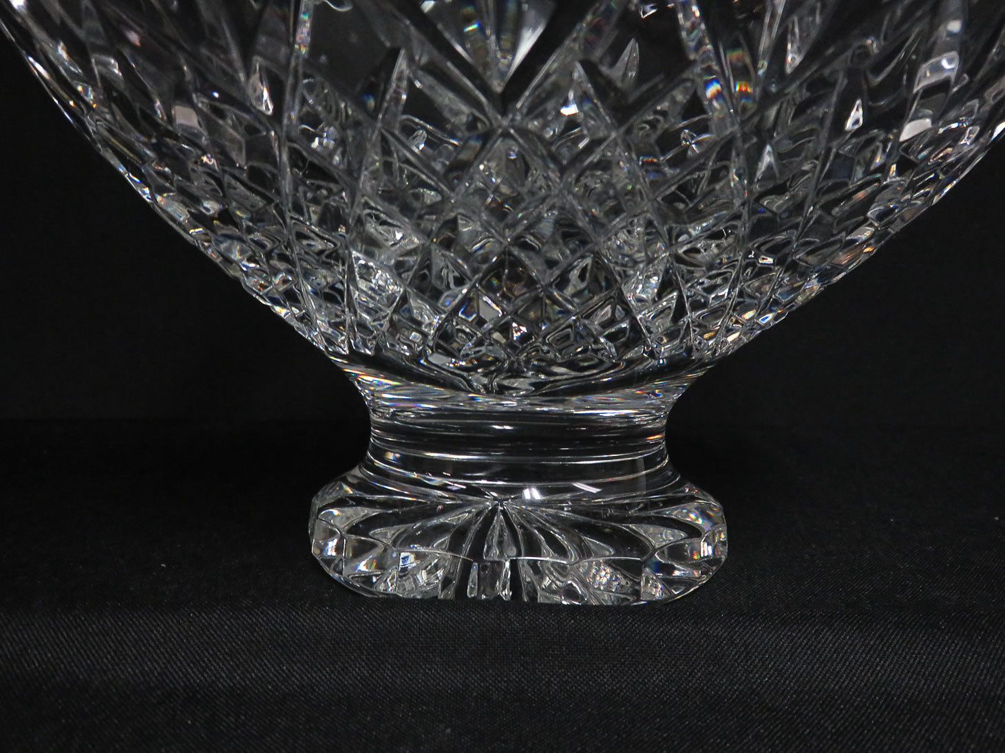 Diamond and vertical cuts, thumbprint edge, pedestal base,