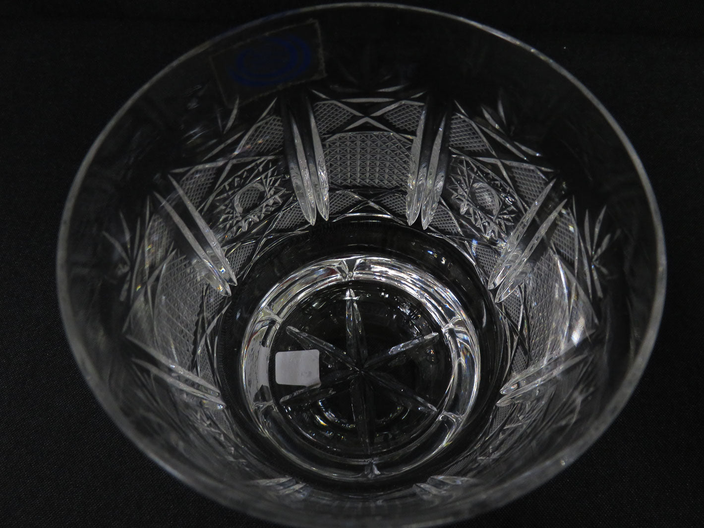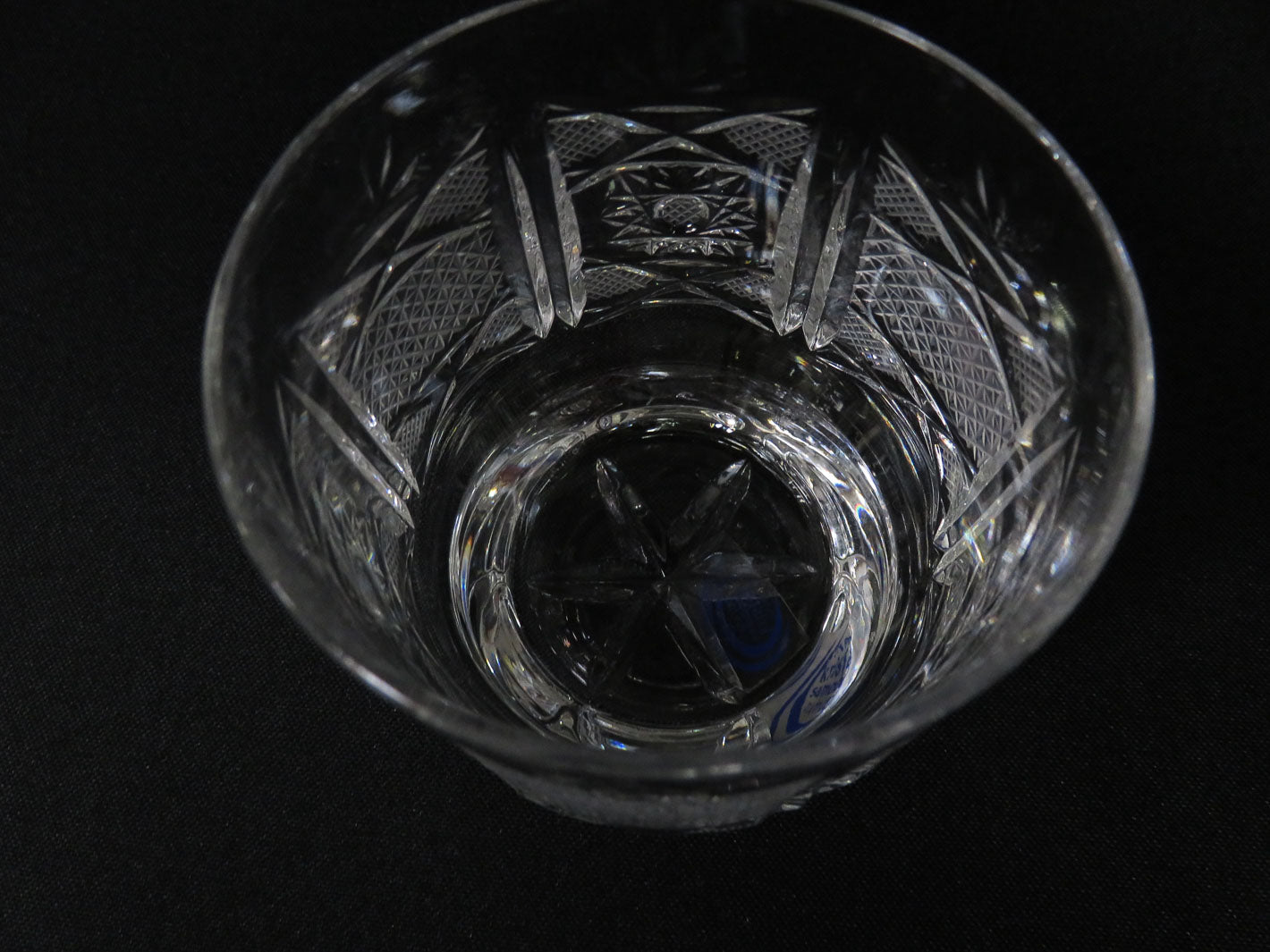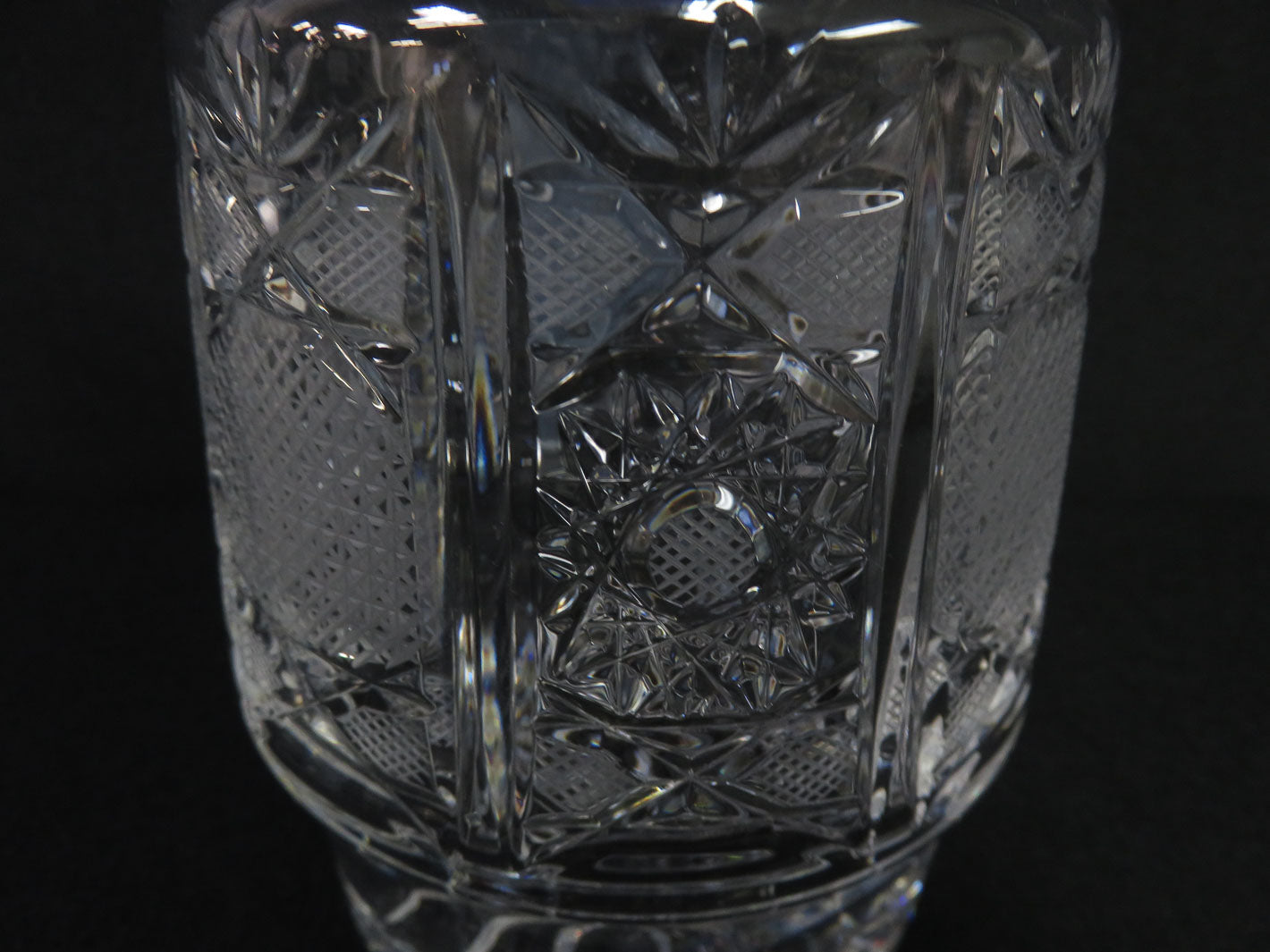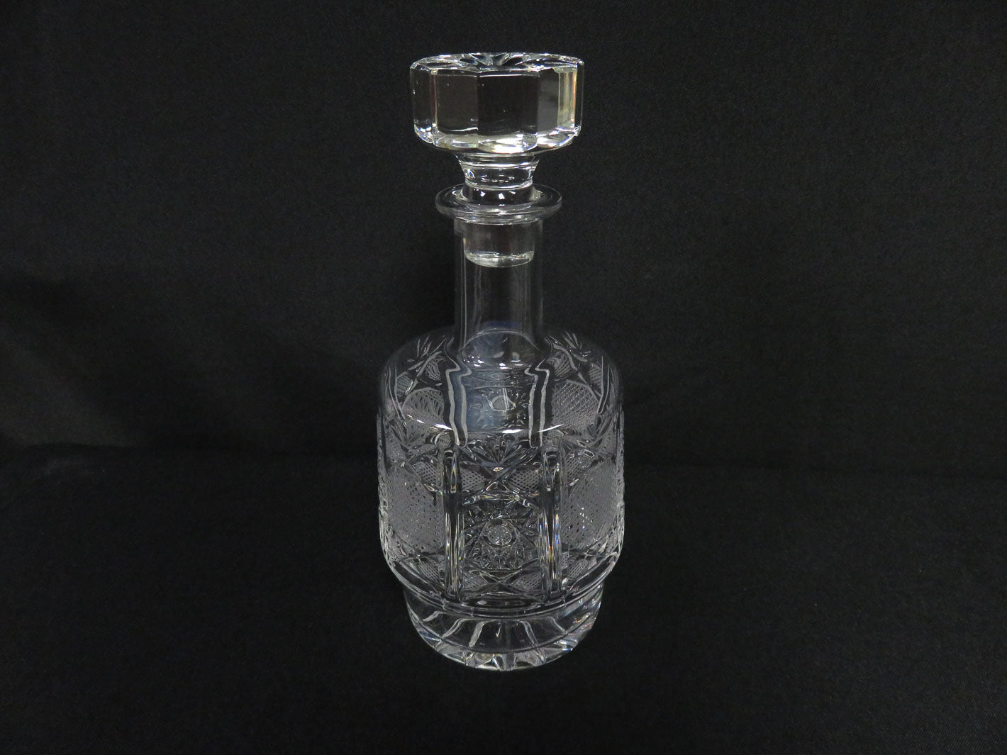 Decanter with stopper, ice bucket and 6 glasses. Cut glass with frosted details. 9pcs